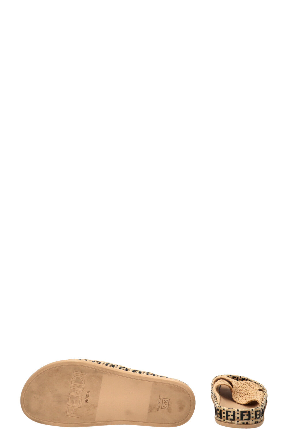 FENDI FF Reflections Raffia Mules Beige