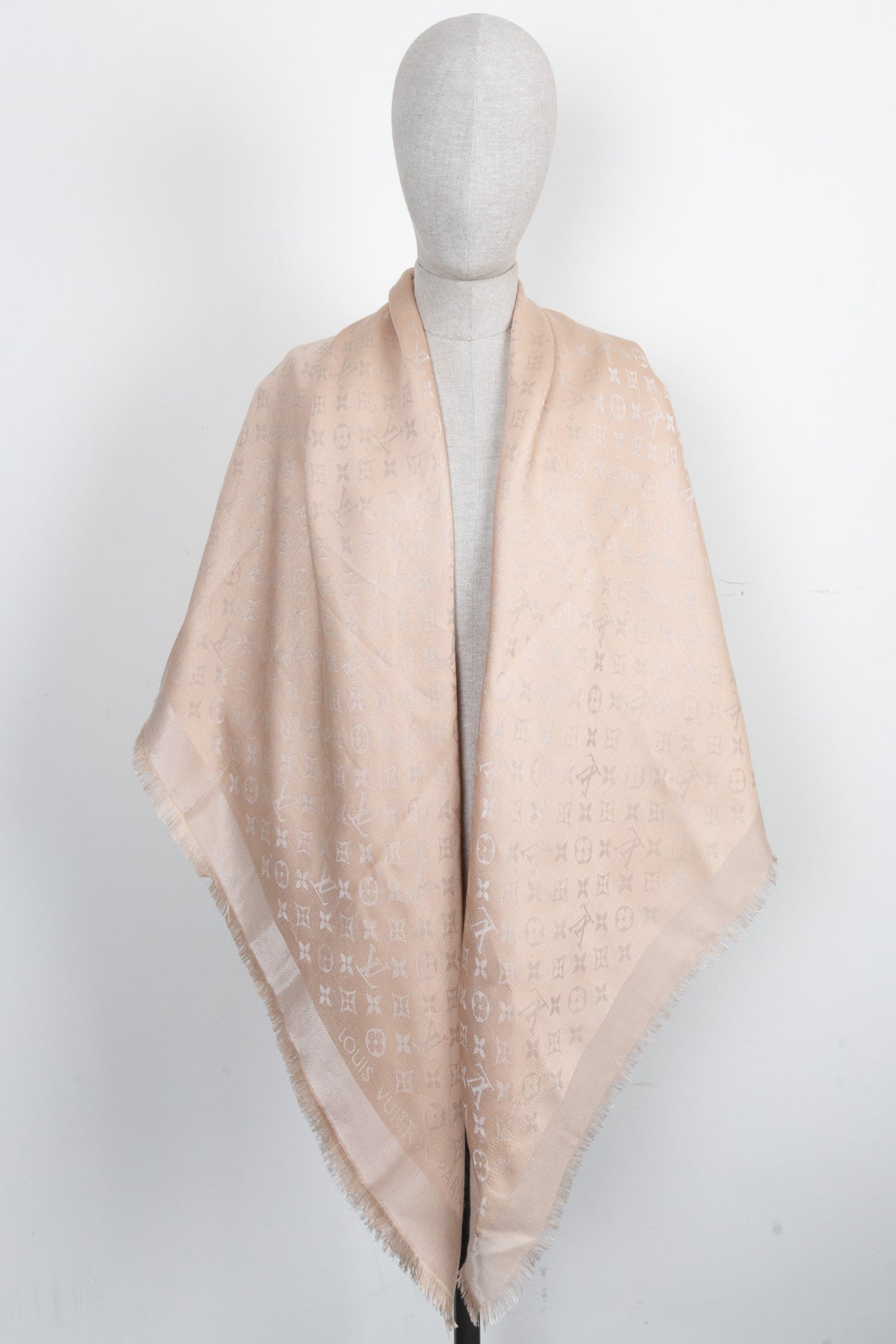 LOUIS VUITTON Fringed MNG Scarf Pink