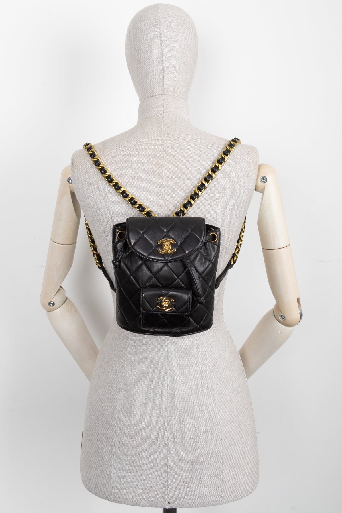 Der CHANEL Mini Duma Backpack verbindet die ikonischen Merkmale der Maison mit der kompakten Form eines Vintage-Rucksacks. Die gesteppte Oberfläche, das CC-Schloss und goldfarbene Beschläge greifen die klassischen Codes von CHANEL auf und übersetzen sie in eine funktionale Silhouette.