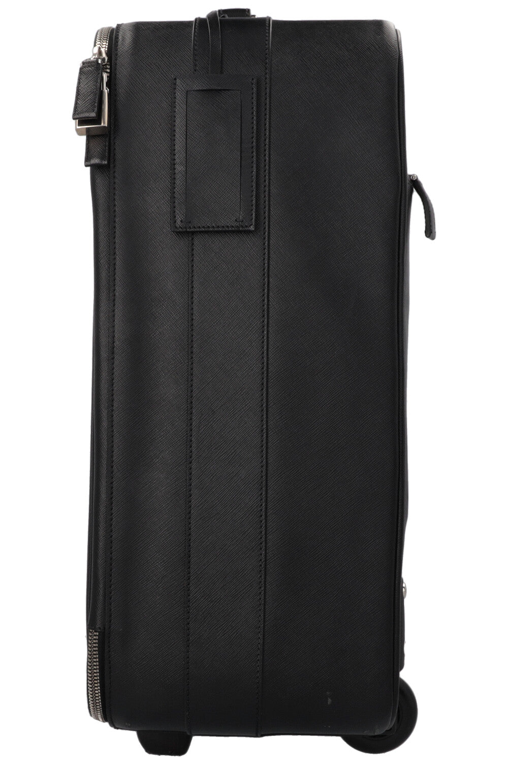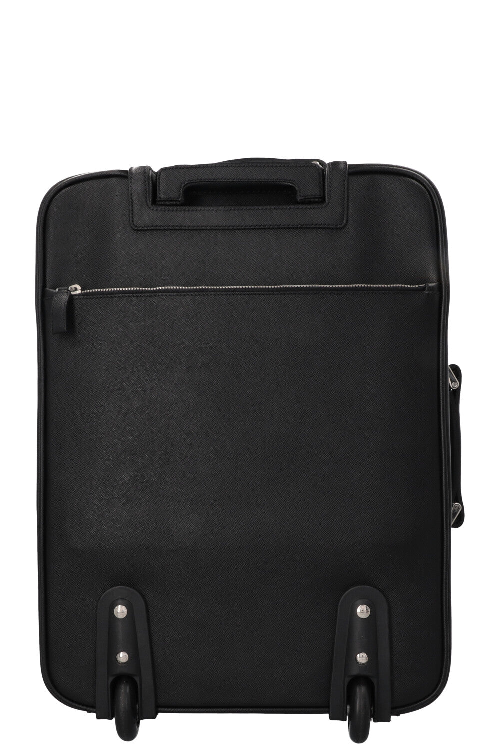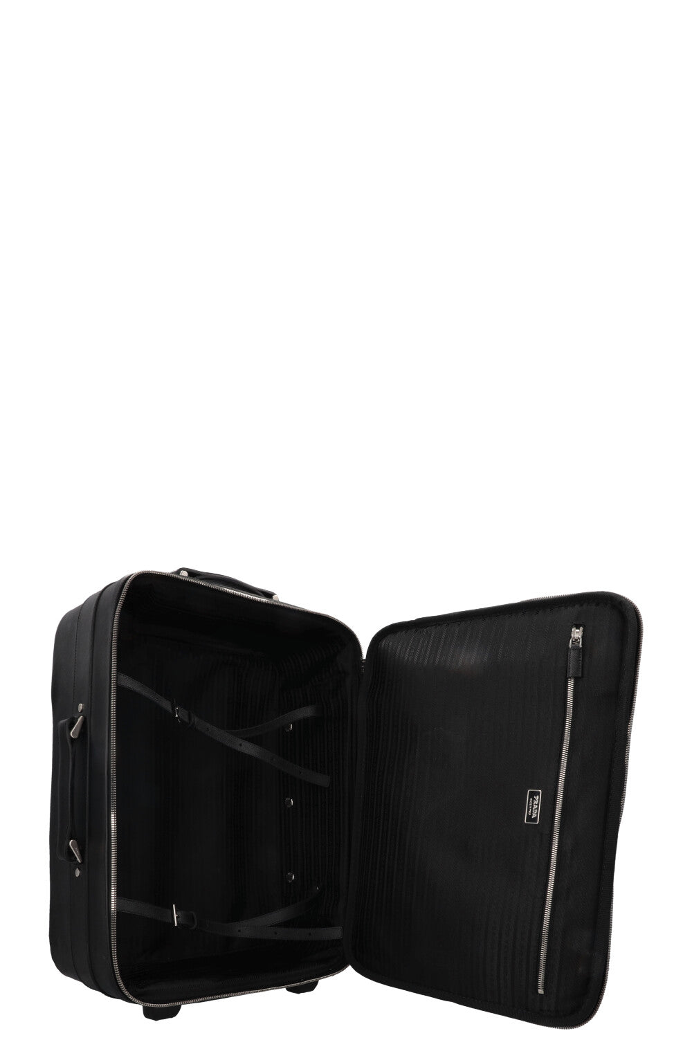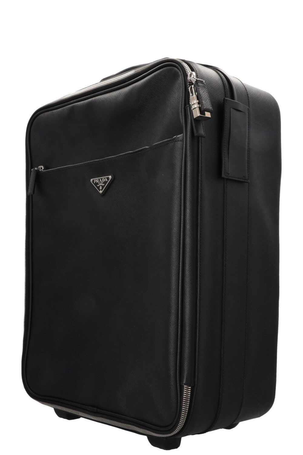 Der PRADA Carry On 50 Trolley in Saffiano Black ist das ultimative Reise-Statement und verkörpert die Design-Philosophie von Miuccia Prada, die Funktionalität und zeitlosen Minimalismus vereint. Gefertigt aus dem legendären Saffiano-Leder - dem hitzebehandelten, kreuzschraffierten Kalbsleder, das für seine Langlebigkeit und Kratzfestigkeit berühmt ist - strahlt dieser Trolley unaufdringlichen, professionellen Luxus aus. Das klare, schwarze Design wird nur vom ikonischen Emaille-Dreieck-Logo akzentuiert. Als idealer Begleiter für stilvolles Reisen bietet dieser Carry On in der Größe 50 die perfekte Balance aus kompaktem Format und dem unverwechselbaren Industrie-Chic des Hauses Prada.