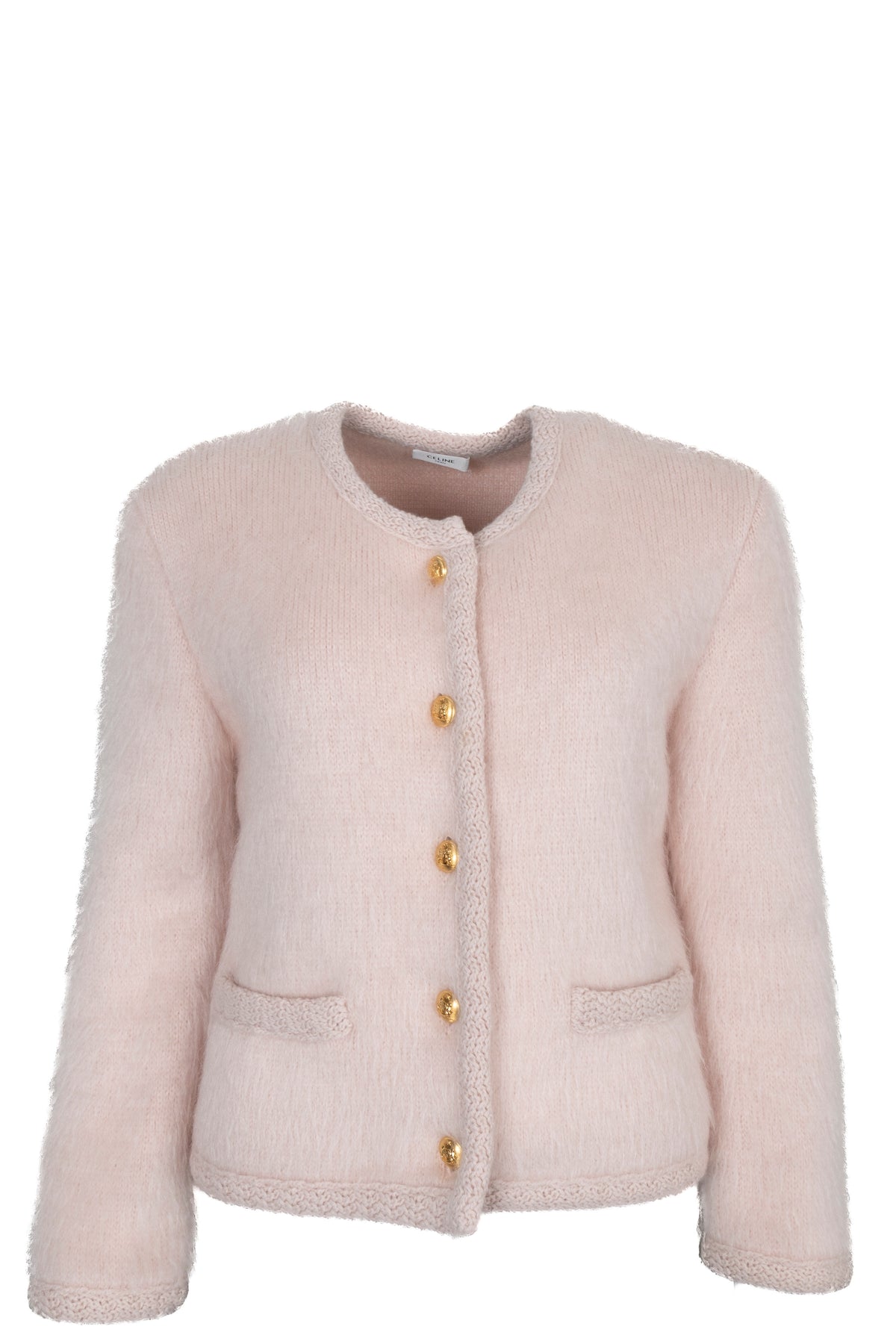 CELINE Slit Pocket Mohair Knit Cardigan Light Pink