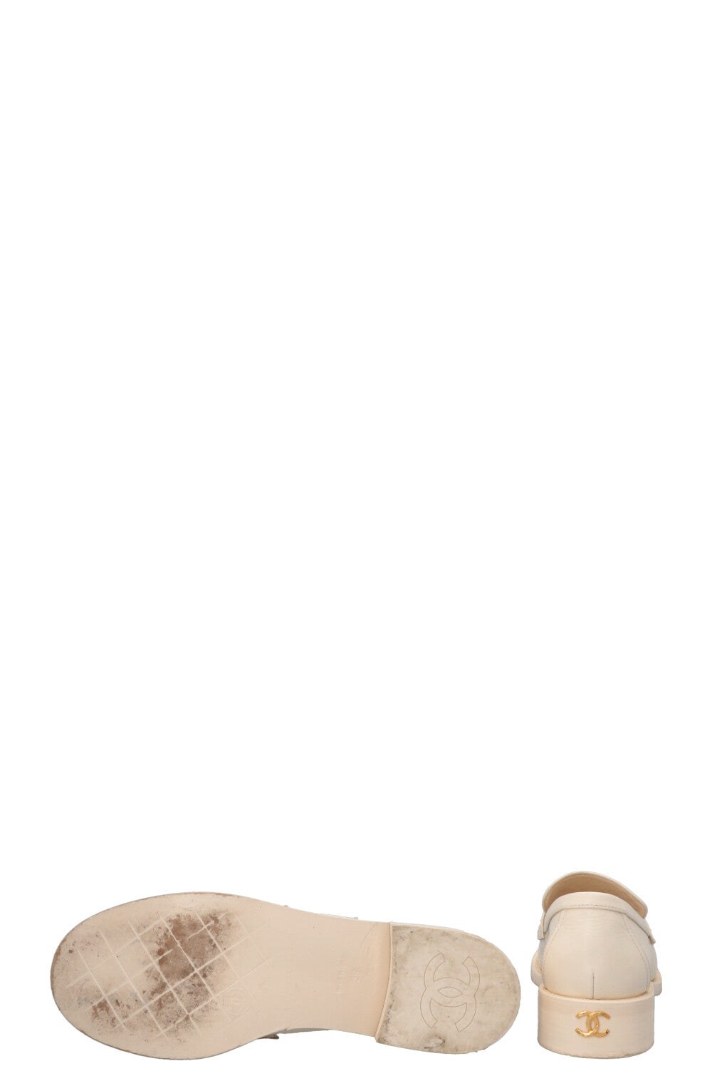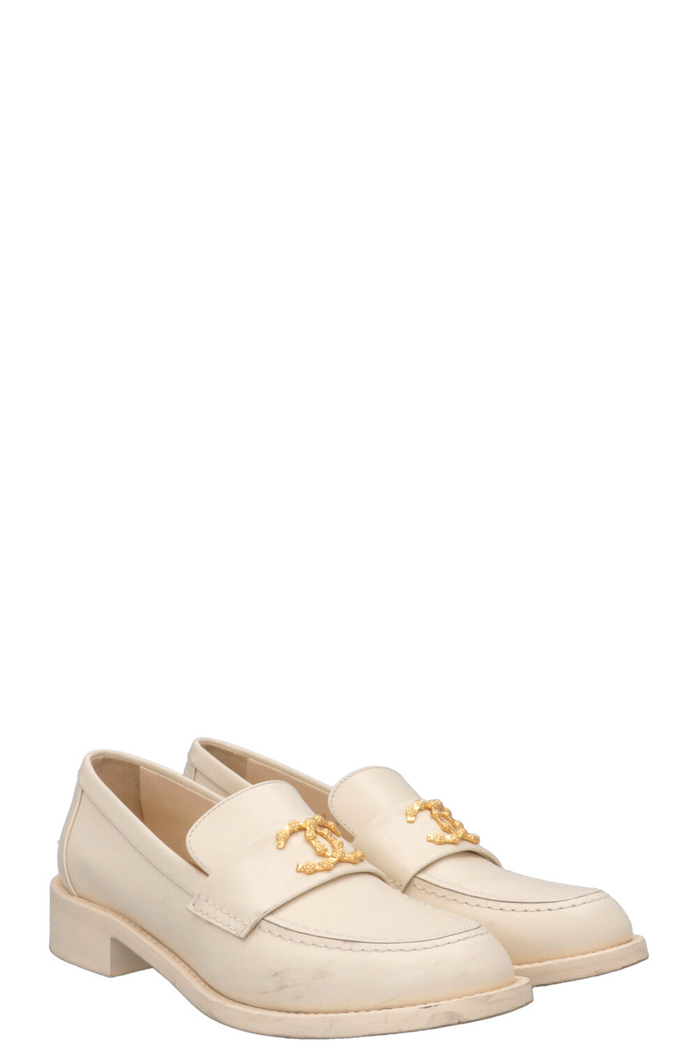 CHANEL CC Loafers White Gold
