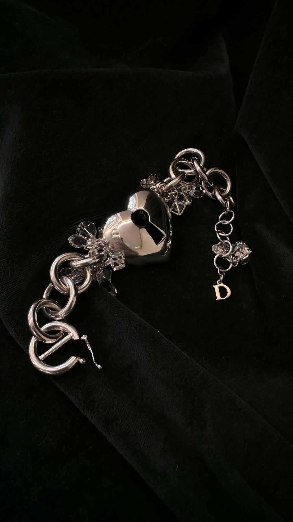 CHRISTIAN DIOR Beaded Heart Bracelet Silver