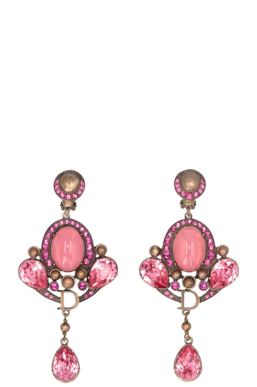 Crystal Drop Ear Clips Pink