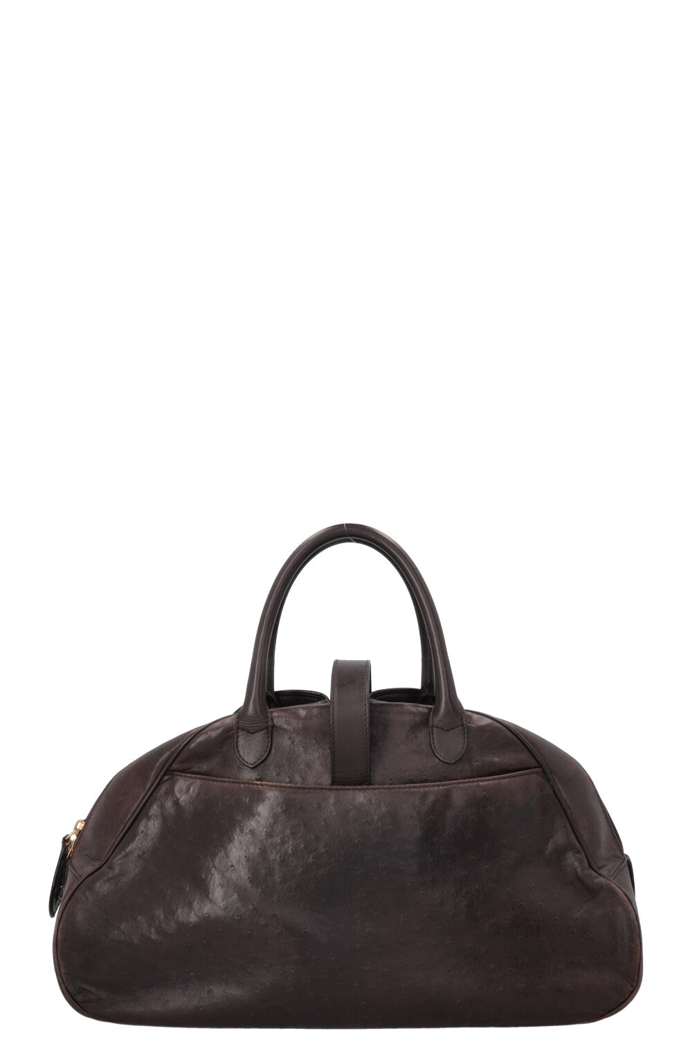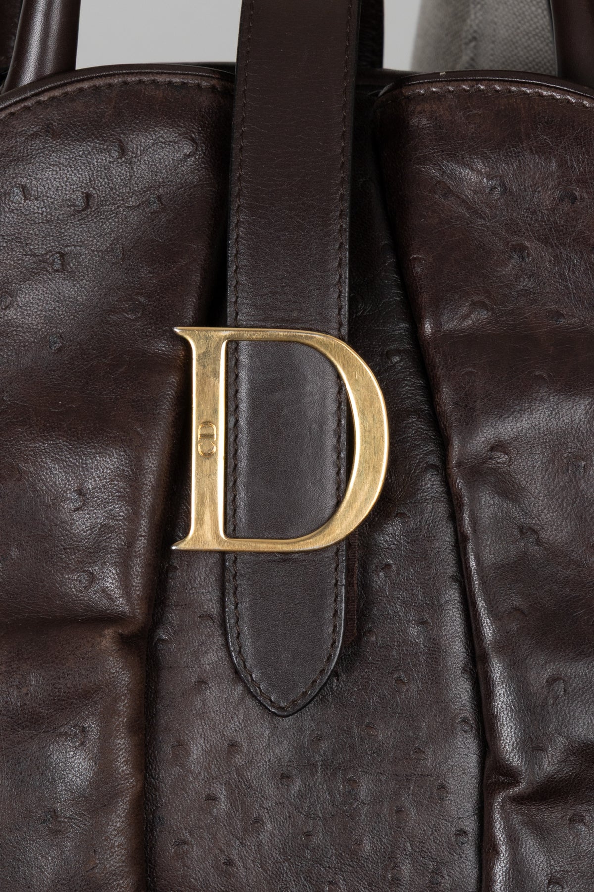 CHRISTIAN DIOR Double Saddle Bowler Bag Ostrich Brown