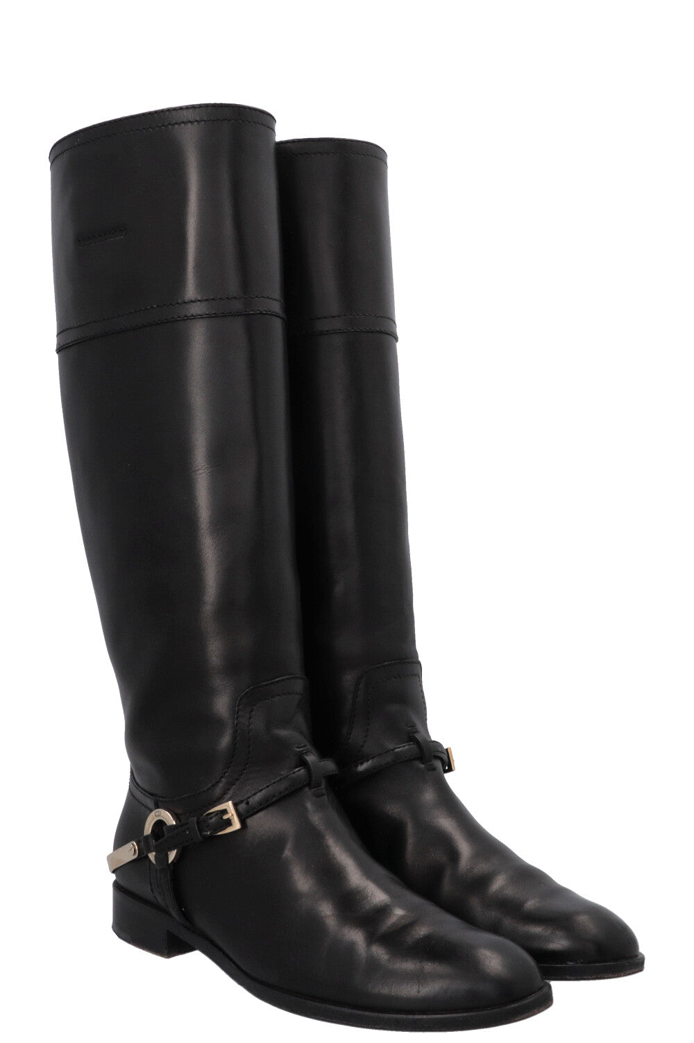 CHRISTIAN DIOR Knee High Etrier Boots Leather Black