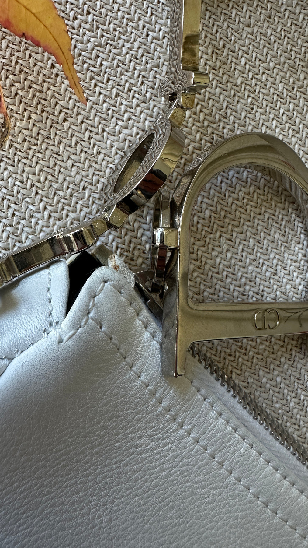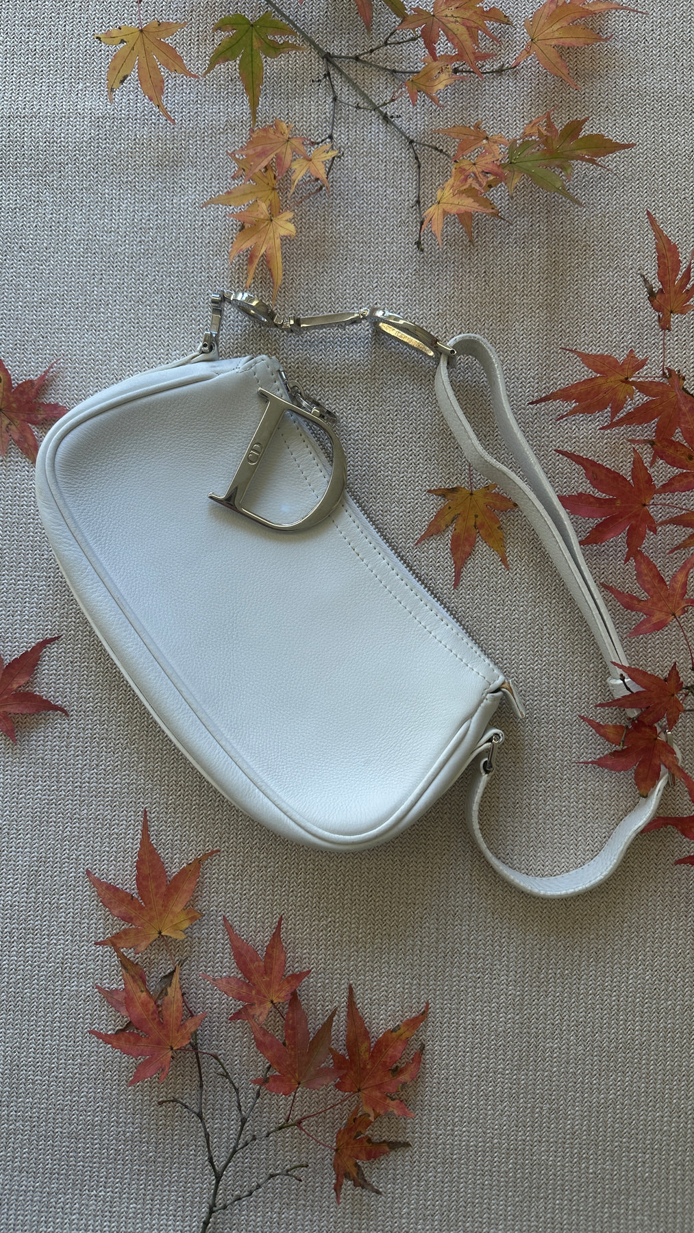 Die Logo Pochette in weißem Leder ist ein zeitloser Treasure, der klassische Eleganz mit moderner Raffinesse vereint.