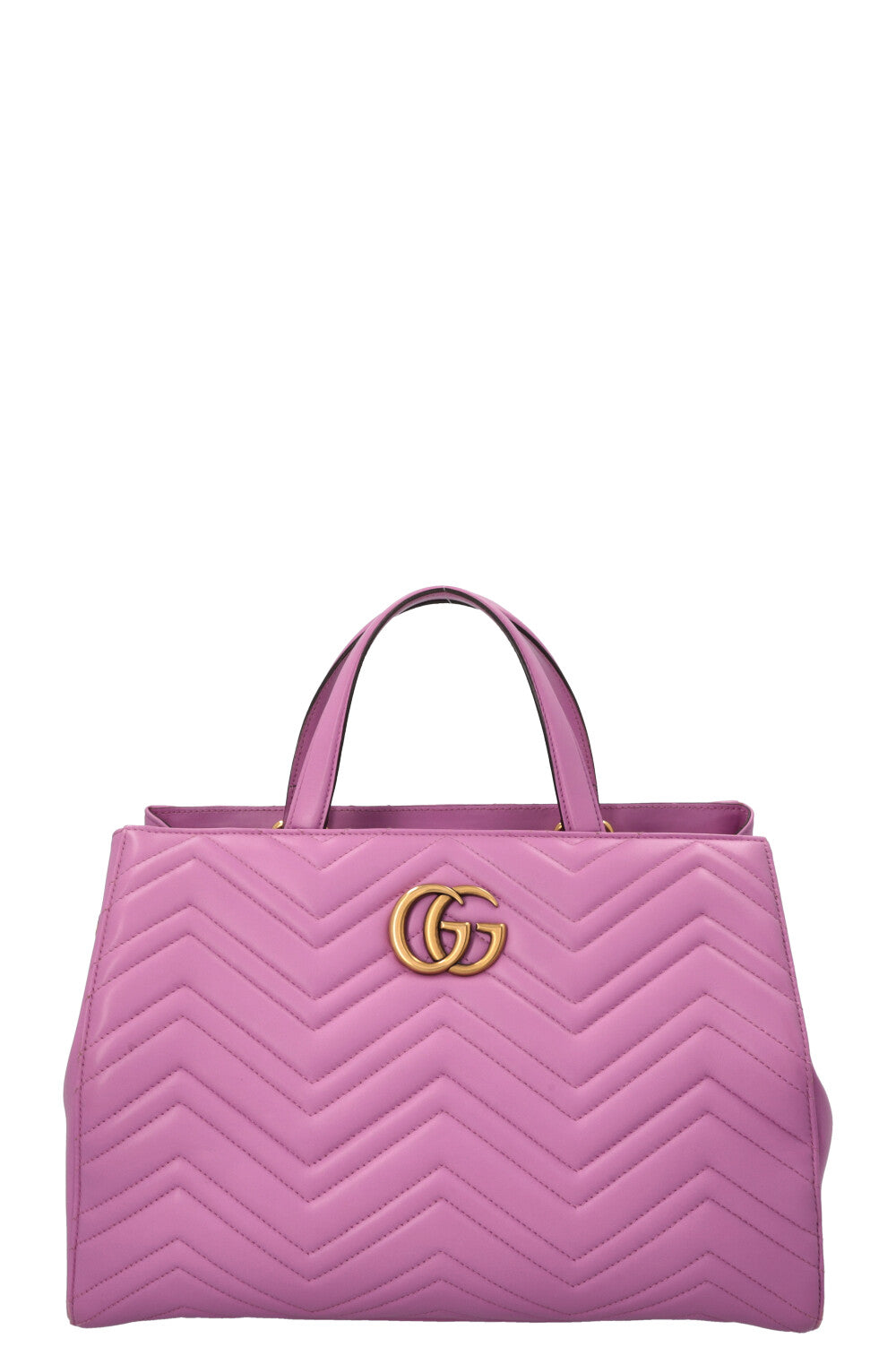 Die GUCCI Marmont Bowling Bag in Pink verbindet eine klassische Bowling-Silhouette mit den charakteristischen Designcodes der Marmont-Linie. Das weich gesteppte Leder mit der typischen Chevron-Struktur verleiht der Tasche eine ruhige, zugleich markante Oberfläche und sorgt für einen angenehmen Griff.