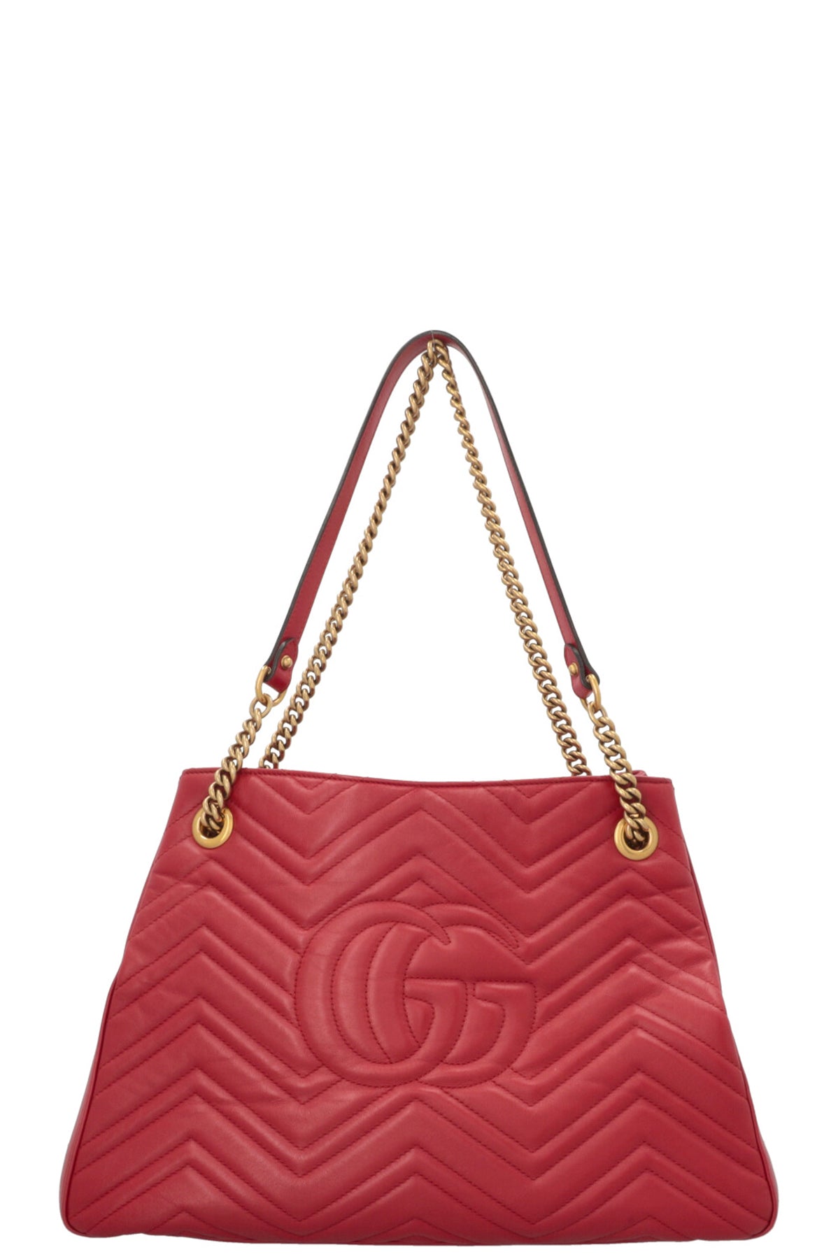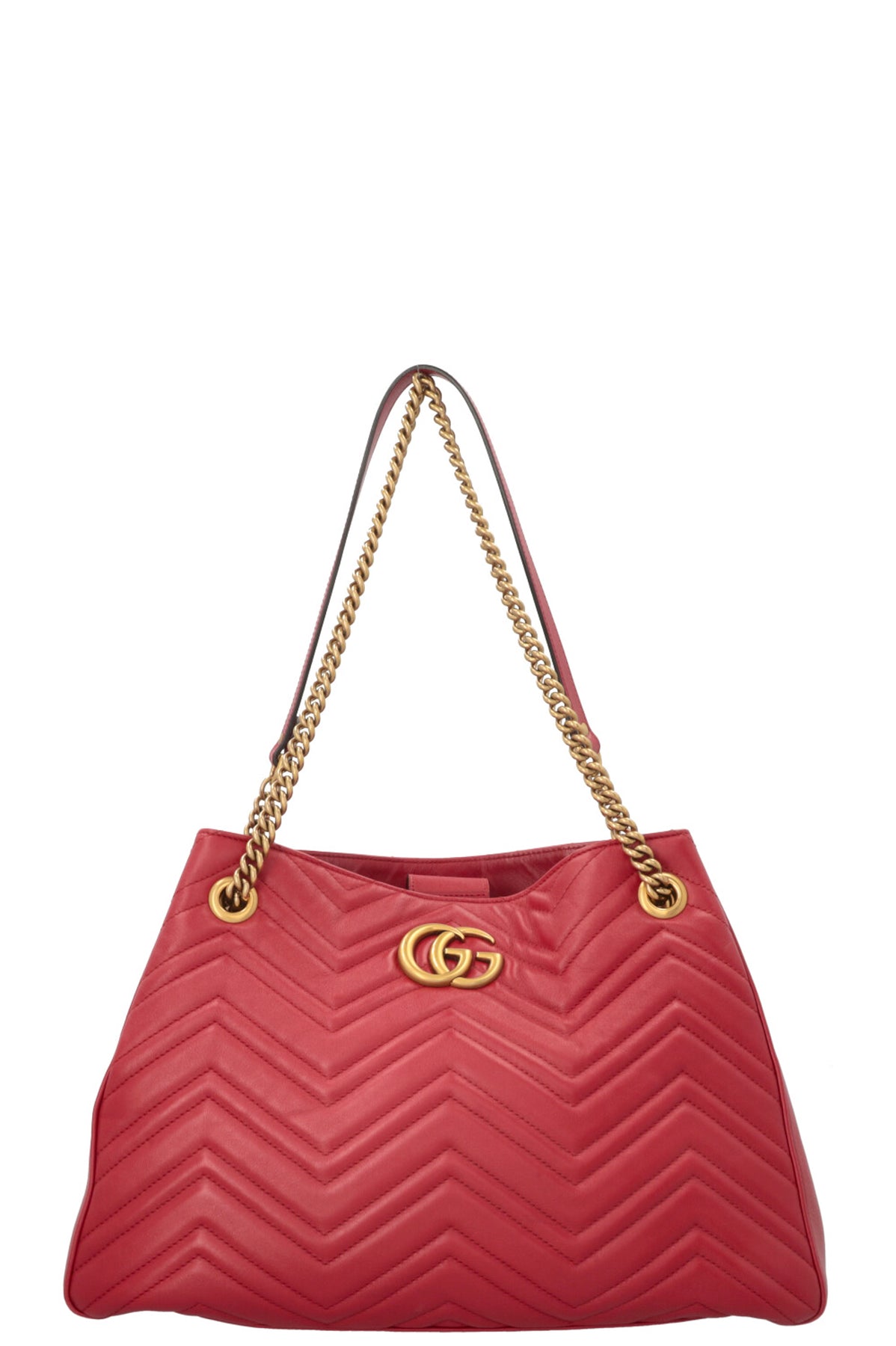 Die GUCCI Marmont Tote Bag in Rot kombiniert klassische Marken-Elemente mit funktionaler Alltagstauglichkeit. Das charakteristische, matelassierte Leder zeichnet sich durch die gesteppte W-Form aus, die der Linie seit ihrer Einführung im Marmont-Kosmos eigen ist und ihr eine ruhige, zugleich texturierte Oberfläche verleiht.