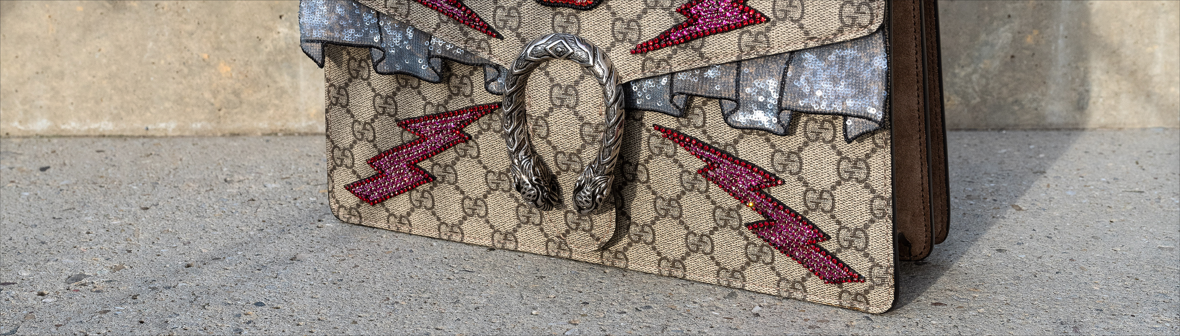 Gucci wurde 1921 in Florenz von Guccio Gucci ins Leben gerufen, inspiriert von den edlen Gepäckstücken, die er als junger Mann in London bewundert hatte. Das kleine Geschäft eroberte schnell die Herzen vieler mit seiner unvergleichlichen Handwerkskunst und Liebe zum Detail. In den 1950er Jahren brachte Aldo Gucci, Guccios Sohn, das ikonische grün-rote Streifenmuster ein, das heute als Das Symbol für Gucci auf der ganzen Welt bekannt ist.