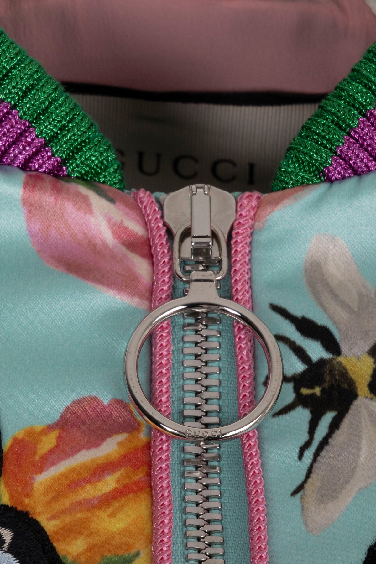 GUCCI 2017 Butterfly Embroidered Bomber Jacket Satin Blue