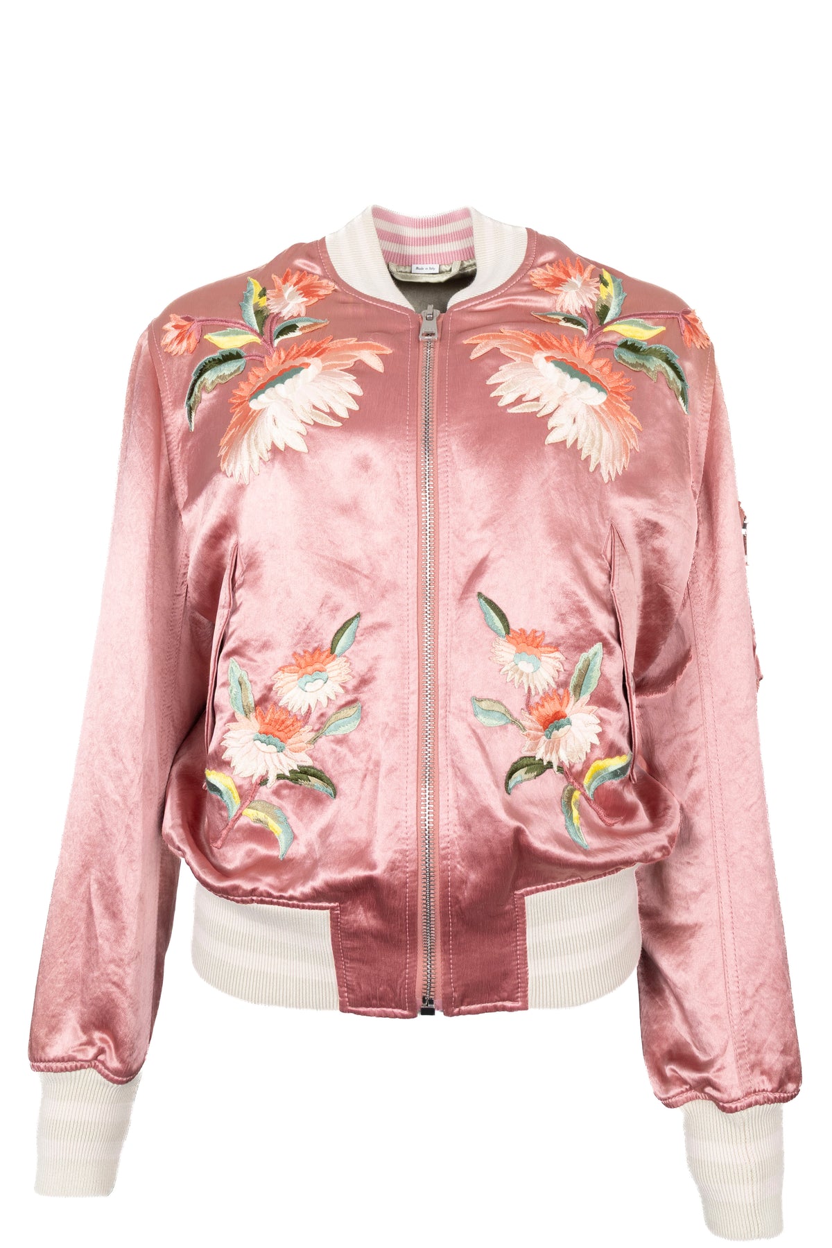 GUCCI Guccification Teddy Zip Bomber Jacket Silk Pink