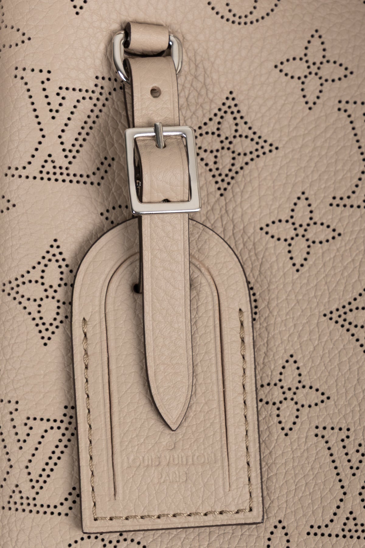 Die Louis Vuitton Hand It All GM Tote Bag in Mahina-Leder in der Farbe Galet verbindet grosszügige Funktionalität mit einer ruhigen, hochwertigen Ästhetik. Das fein perforierte Mahina-Leder mit dezentem Monogram-Motiv verleiht der Tasche Tiefe und Struktur, ohne aufdringlich zu wirken. Der helle, steinfarbene Ton Galet unterstreicht den zurückhaltenden Charakter des Modells und lässt sich vielseitig kombinieren.