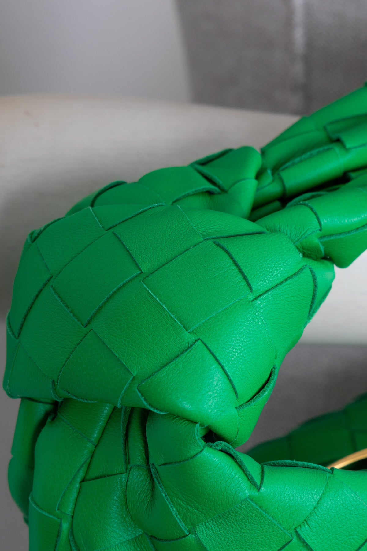 Die kräftige Farbe „Parakeet“, ein lebendiges Grün, verleiht dem Modell einen modernen Ausdruck. Das Design basiert auf einer überarbeiteten Silhouette aus dem Bottega-Veneta-Archiv der frühen 2000er-Jahre, neu interpretiert in kompakter Mini-Form.