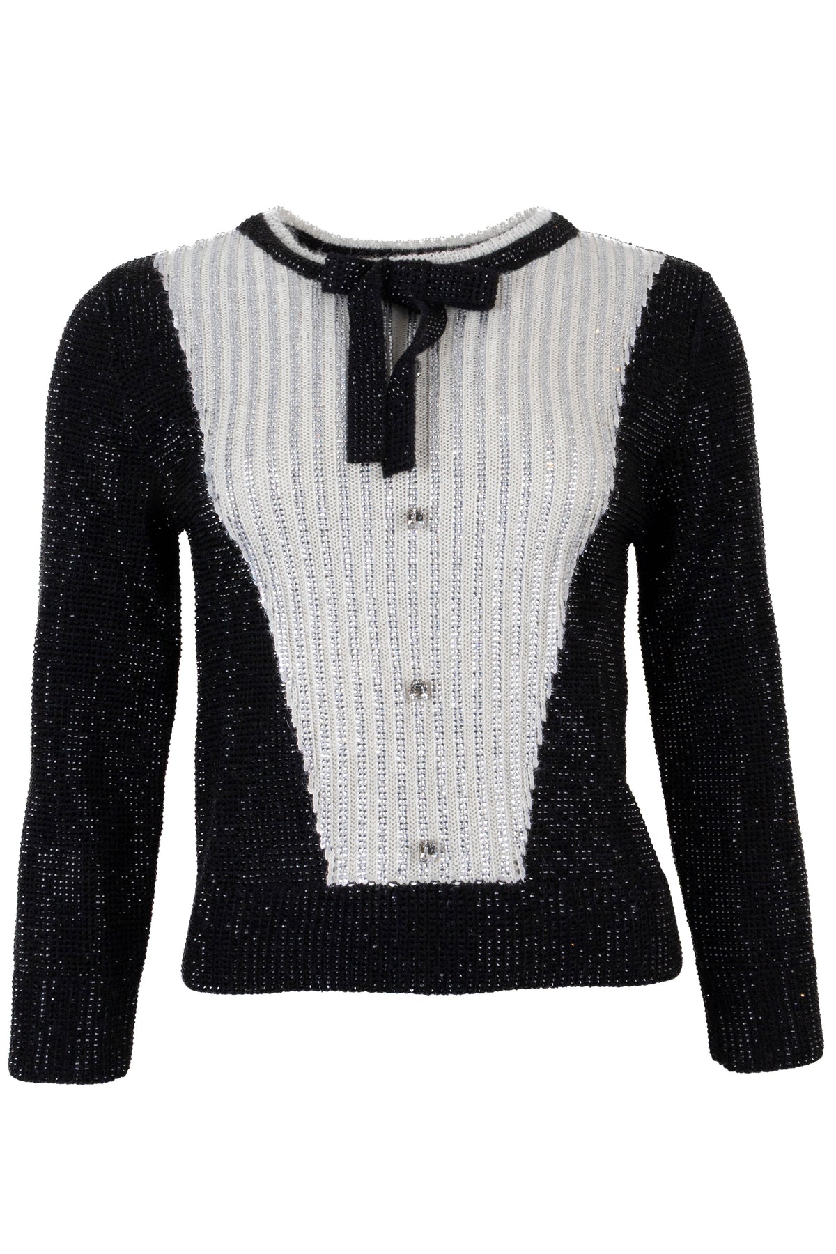CELINE Bow Strass Alpaca Knit Black Ecru