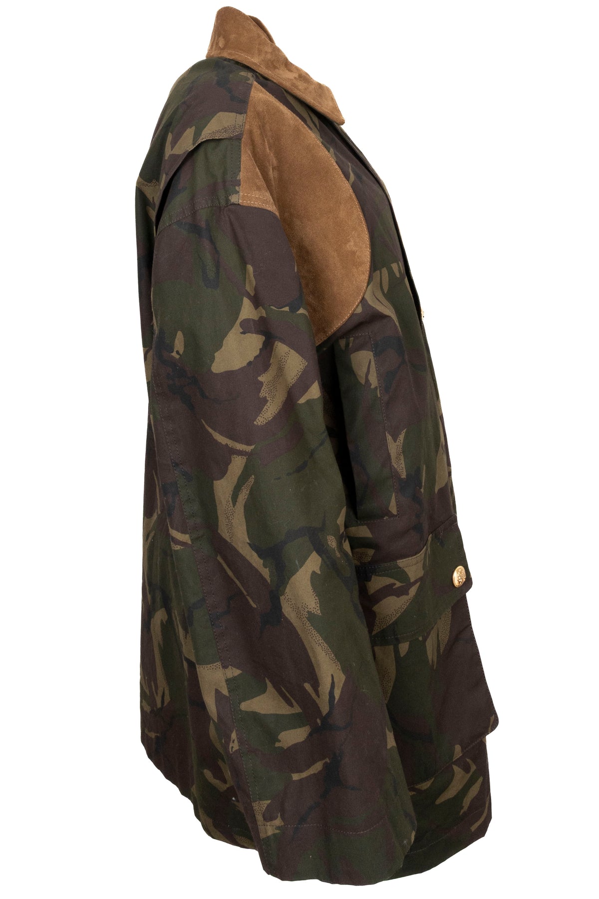Die Camouflage Hunting Jacket von Celine interpretiert klassische Outdoor‑Ästhetik auf eine moderne, stilsichere Weise. Inspiriert von traditionellen Hunting‑Jacken kombiniert sie robuste Materialien mit einem entspannten, urbanen Schnitt. Das khakifarbene Camouflage‑Muster verleiht dem Piece einen markanten, vielseitigen Charakter, der sich sowohl zu neutralen Basics als auch zu Statement Looks tragen lässt.