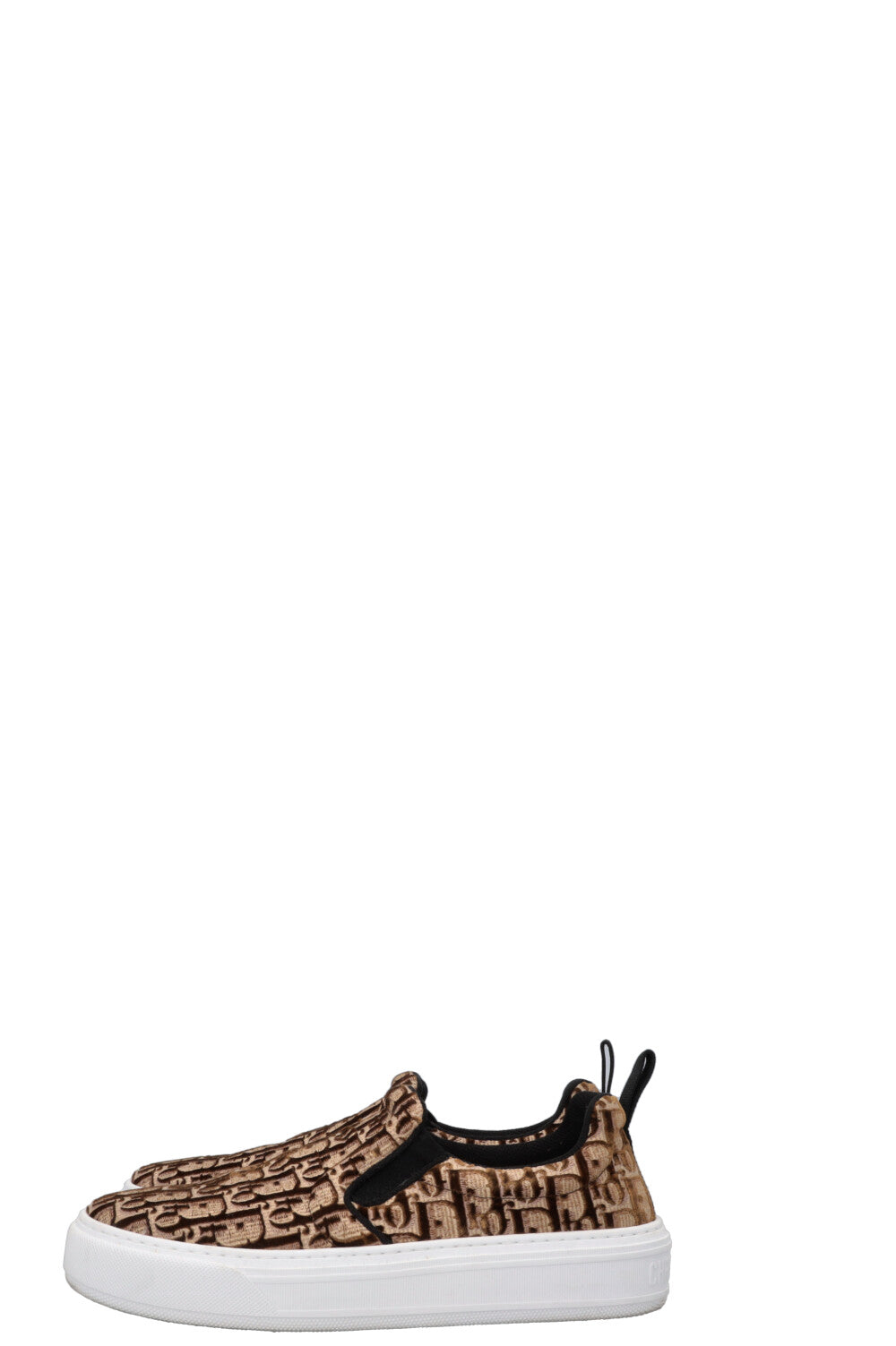 Der Dior Solar Sneaker in Samt Gold ist ein Slip‑On, welcher klassischen Sneaker‑Charme mit Couture‑Details verbindet. Der Velvet‑Oberstoff trägt das ikonische Dior Oblique‑Muster in aufwendiger Stickerei, jedes Paar kann über 150 000 Stiche aufweisen, eine technische Meisterleistung, die Textur und Tiefe erzeugt.