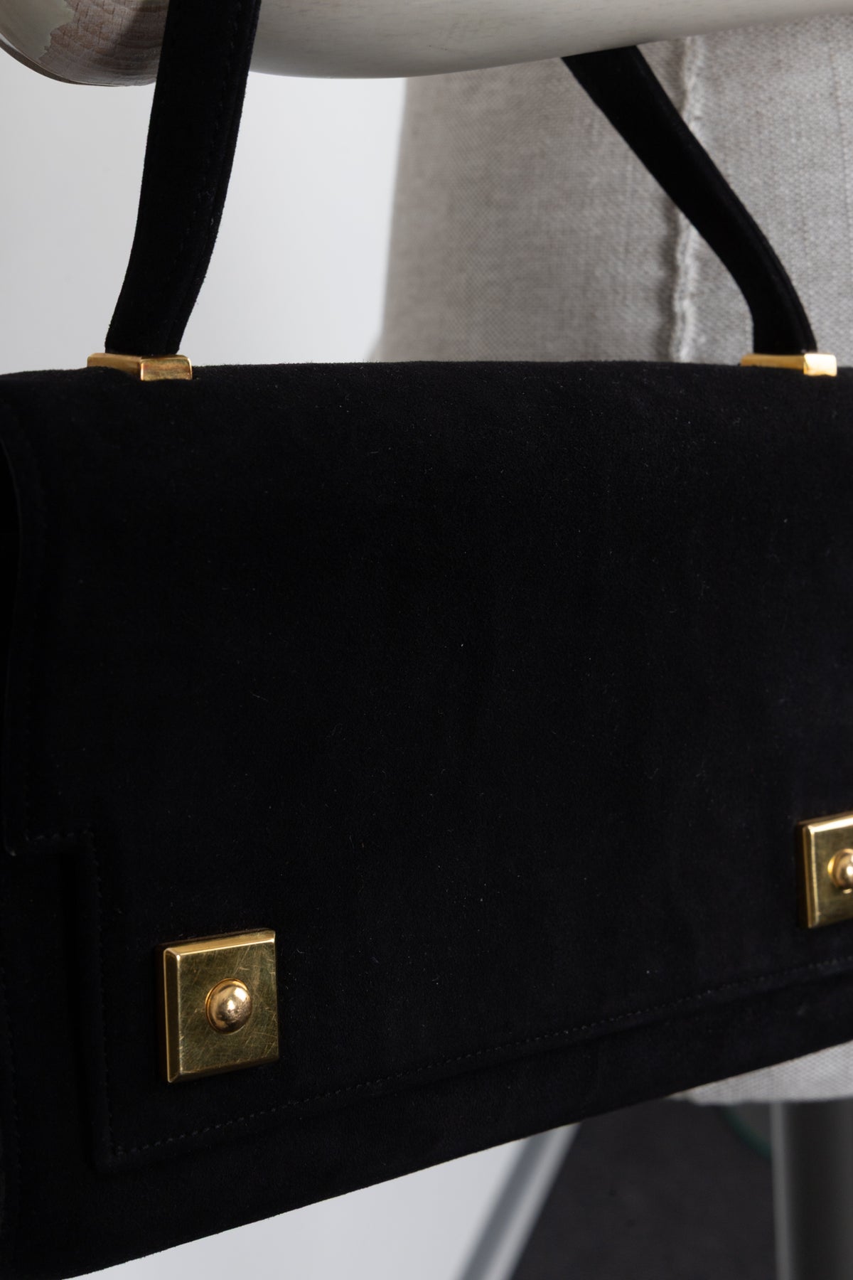 Die HERMÈS The Piano Top Handle Bag in Suede Schwarz vereint schlichte Eleganz mit subtiler Präsenz. Die klar definierte Silhouette mit geradem Boden und abgerundeten Kanten wirkt ruhig und strukturiert zugleich. Das weiche Suedeleder verleiht der Tasche eine samtige, fein matte Oberfläche — eine Haptik, die klassische Raffinesse mit urbaner Alltagstauglichkeit verbindet.