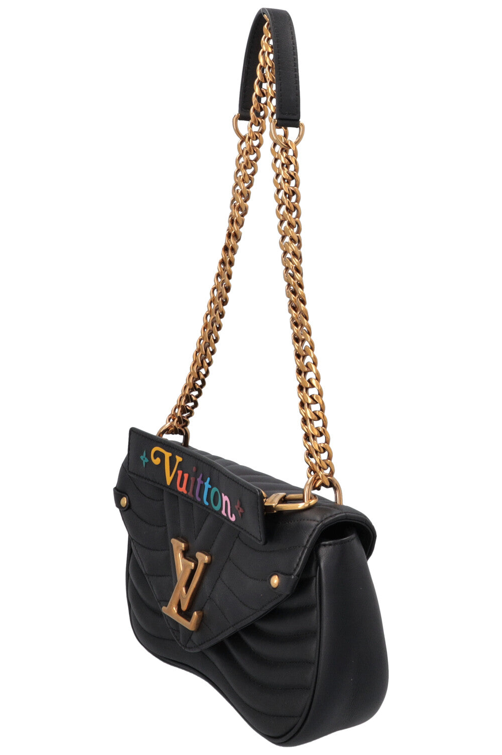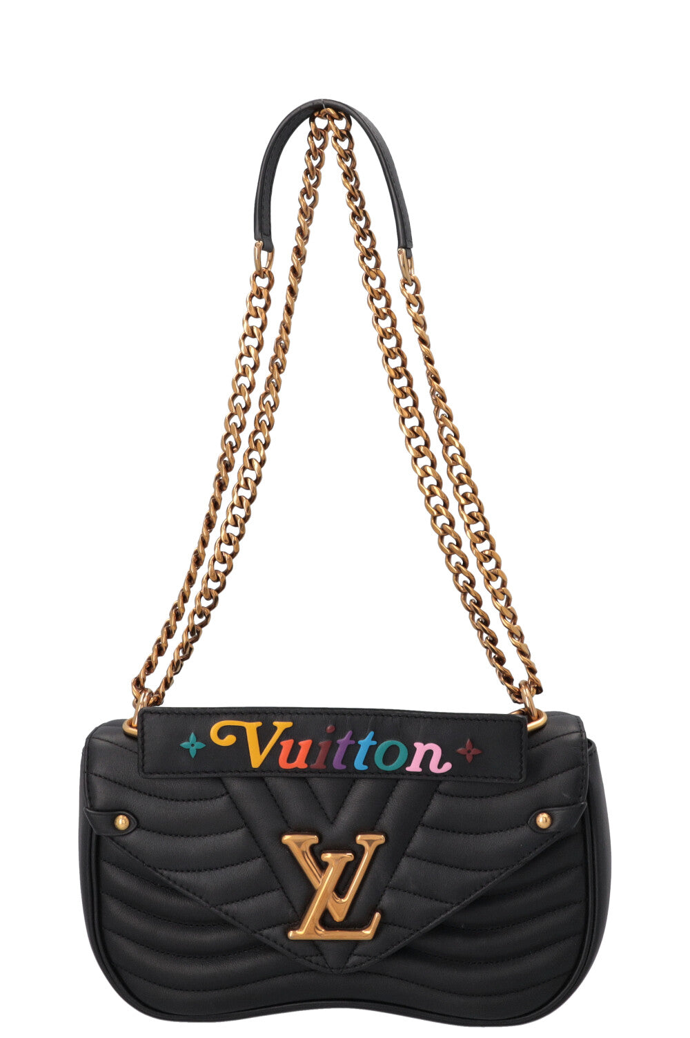 Die Louis Vuitton New Wave Crossbody Bag in schwarzem Leder zeichnet sich durch ihre weich gepolsterte, wellenförmig gesteppte Oberfläche aus. Sie wurde 2018 als Teil der „New Wave“-Kollektion vorgestellt, die von den Designs der 80er-Jahre inspiriert ist und einen frischen, zeitgemäßen Stil bietet. Heute gilt die Tasche als jugendlicher, vielseitiger Klassiker, der sportliche Lässigkeit mit typischem Louis-Vuitton-Glamour vereint.