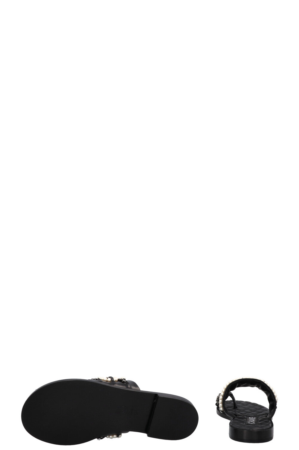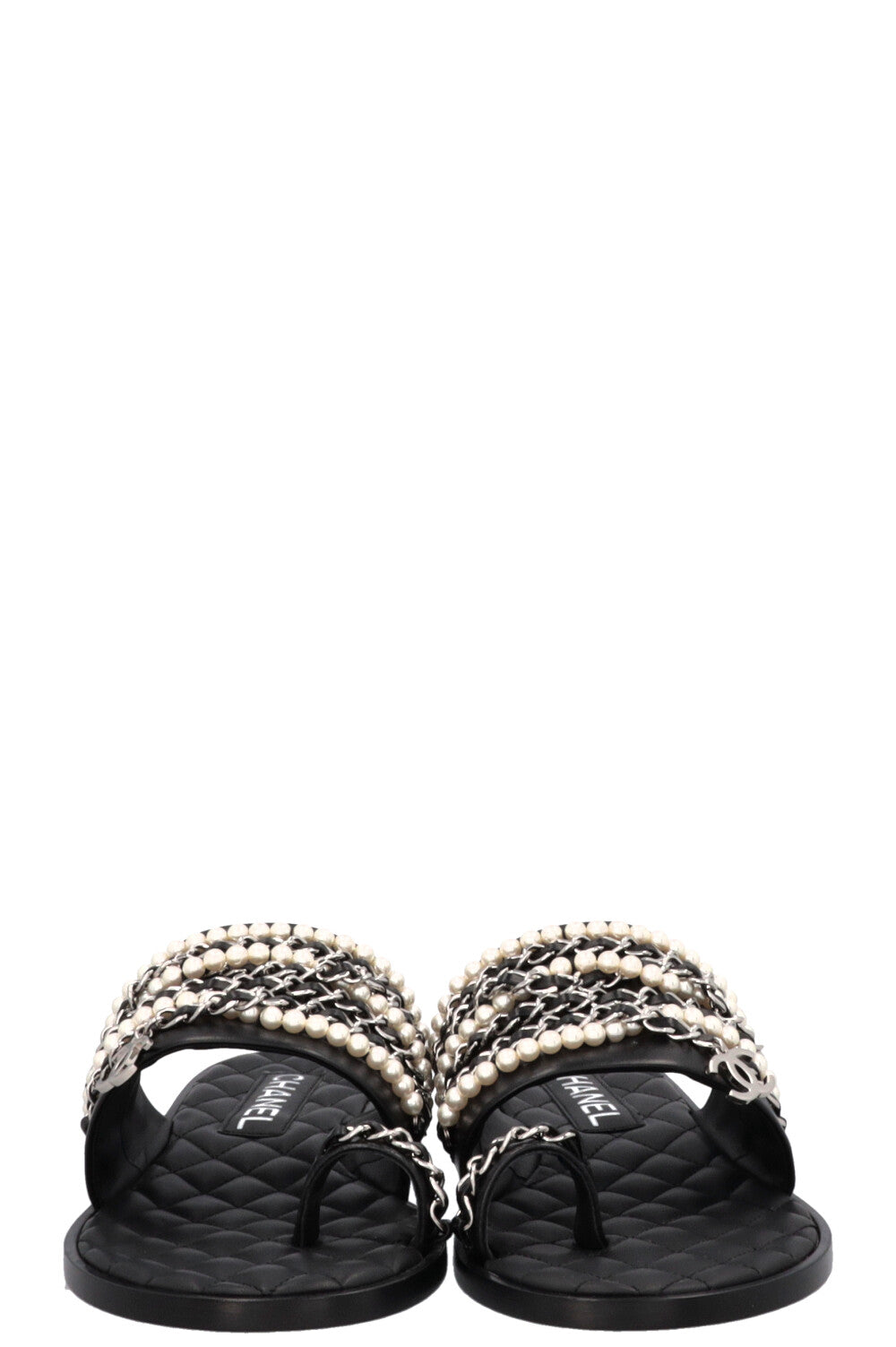 CHANEL CC Charm Chain Pearl Sandals Black