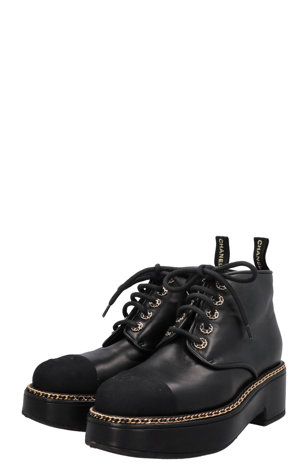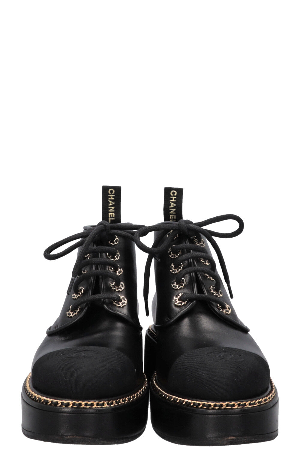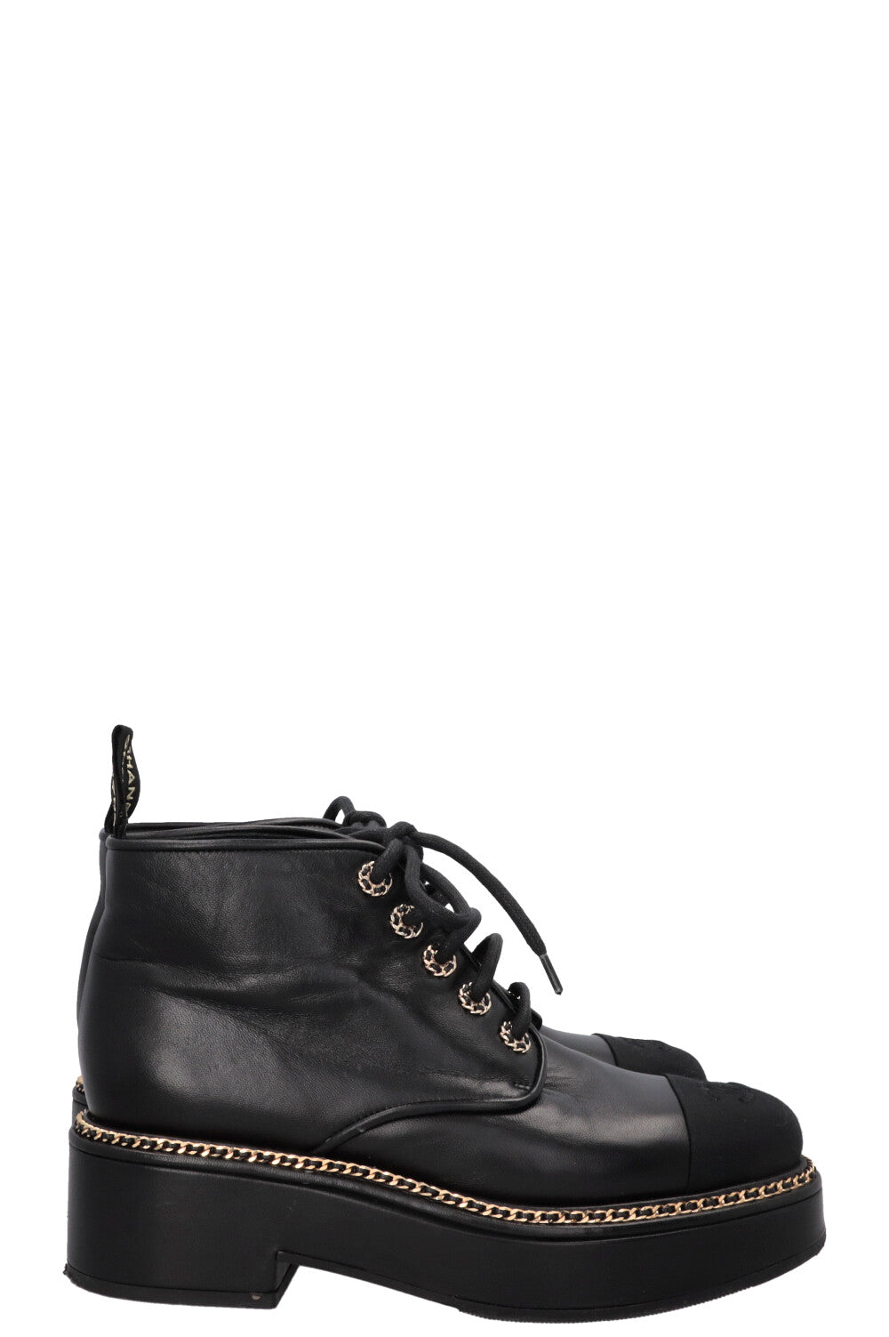 CHANEL Chain Ankle Boots 2020 Leather Black