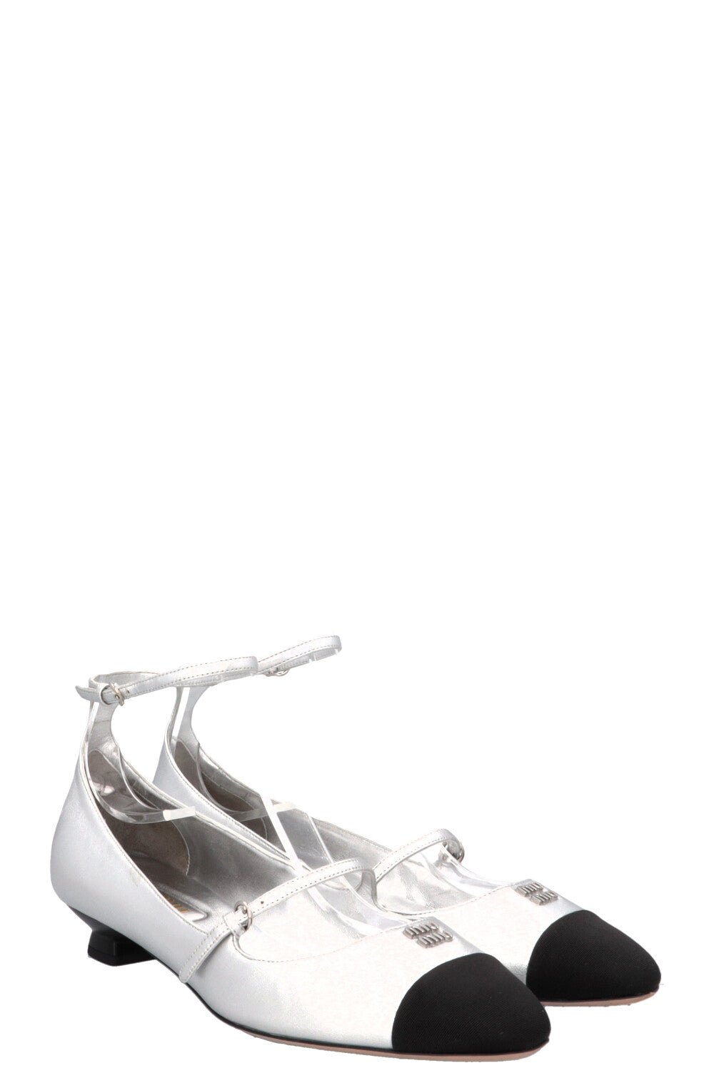 MIUMIU Logo Mary Jane Flats Silver