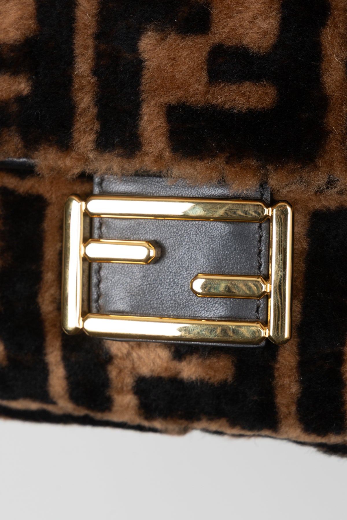 FENDI Zucca Shearling Baguette Bag