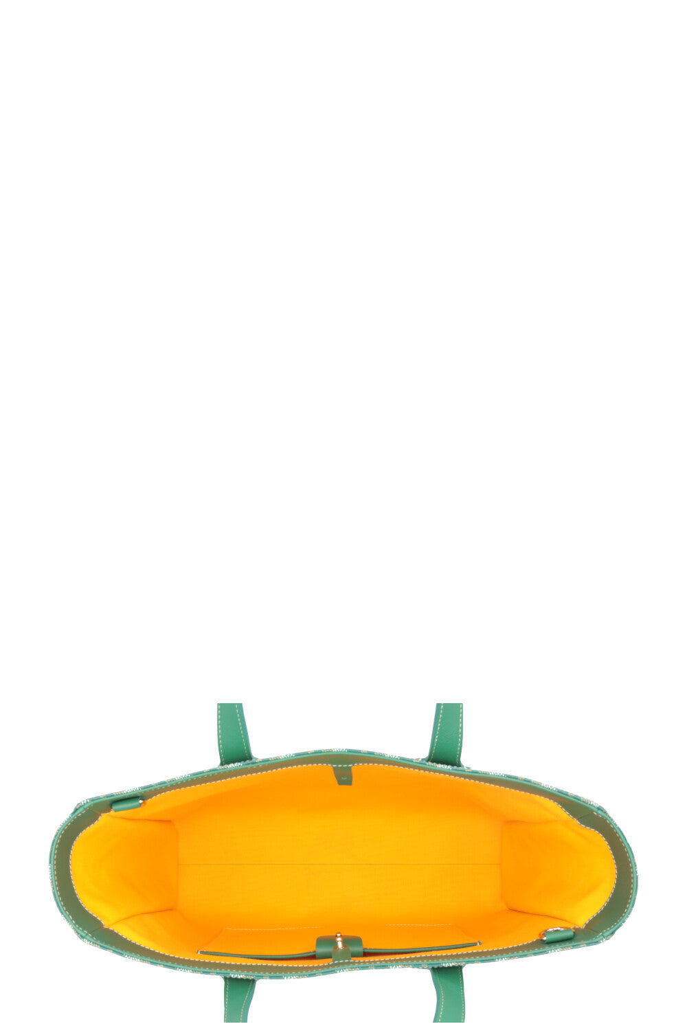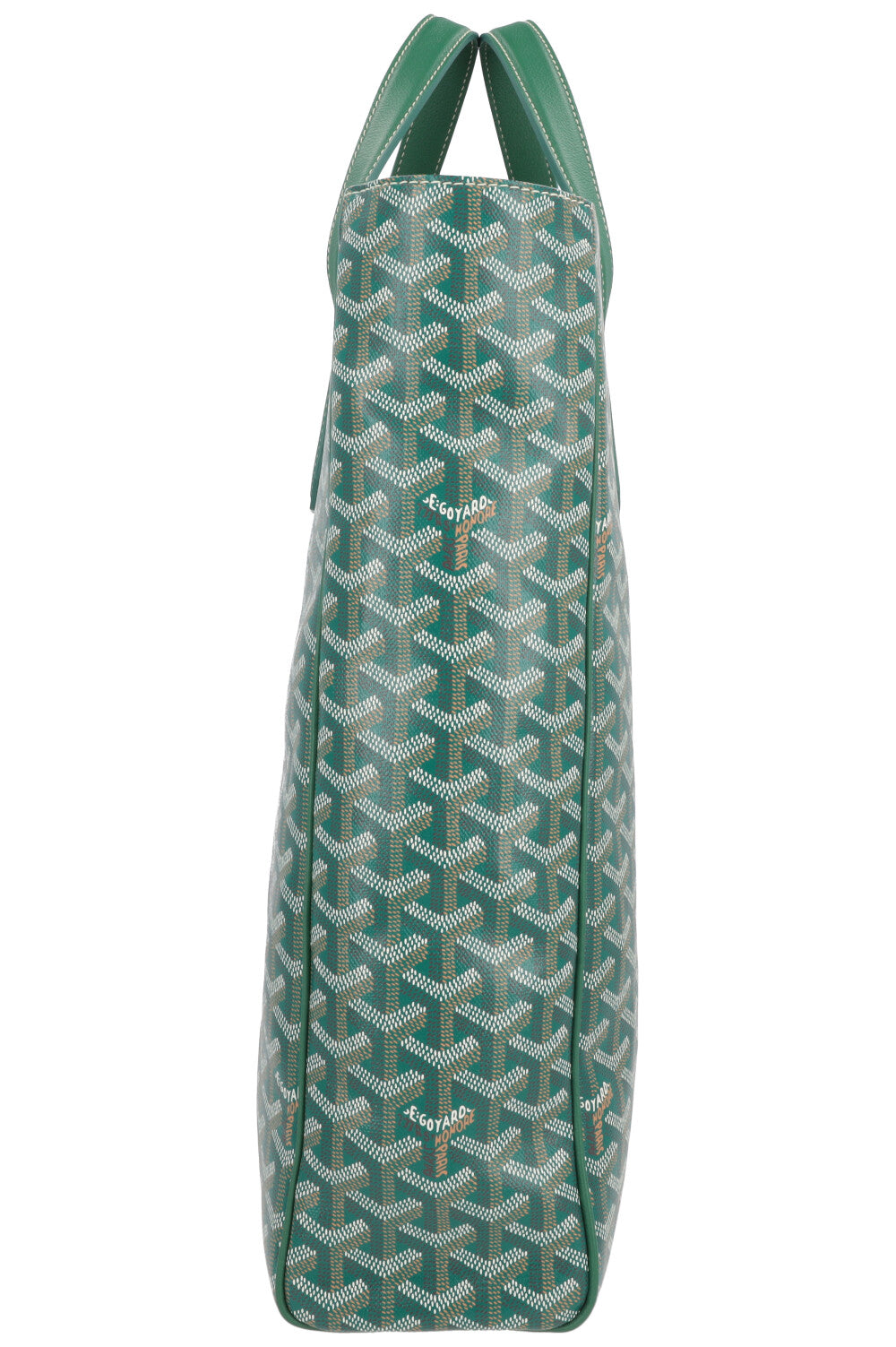 Die Goyard Voltaire Tote in sattem Grün vereint legendäres Erbe mit modernem Chic. Die ikonische, handgemalte Chevron Musterung auf robustem Canvas macht jede Tasche zum Unikat, während das geräumige Design perfekt für den Alltag ist. Goyard, seit 1853 bekannt für exklusive Reiseartikel, setzt mit der Voltaire Tote die Tradition von Handwerkskunst und Eleganz fort, ein stilvolles Statement für urbane Individualisten.