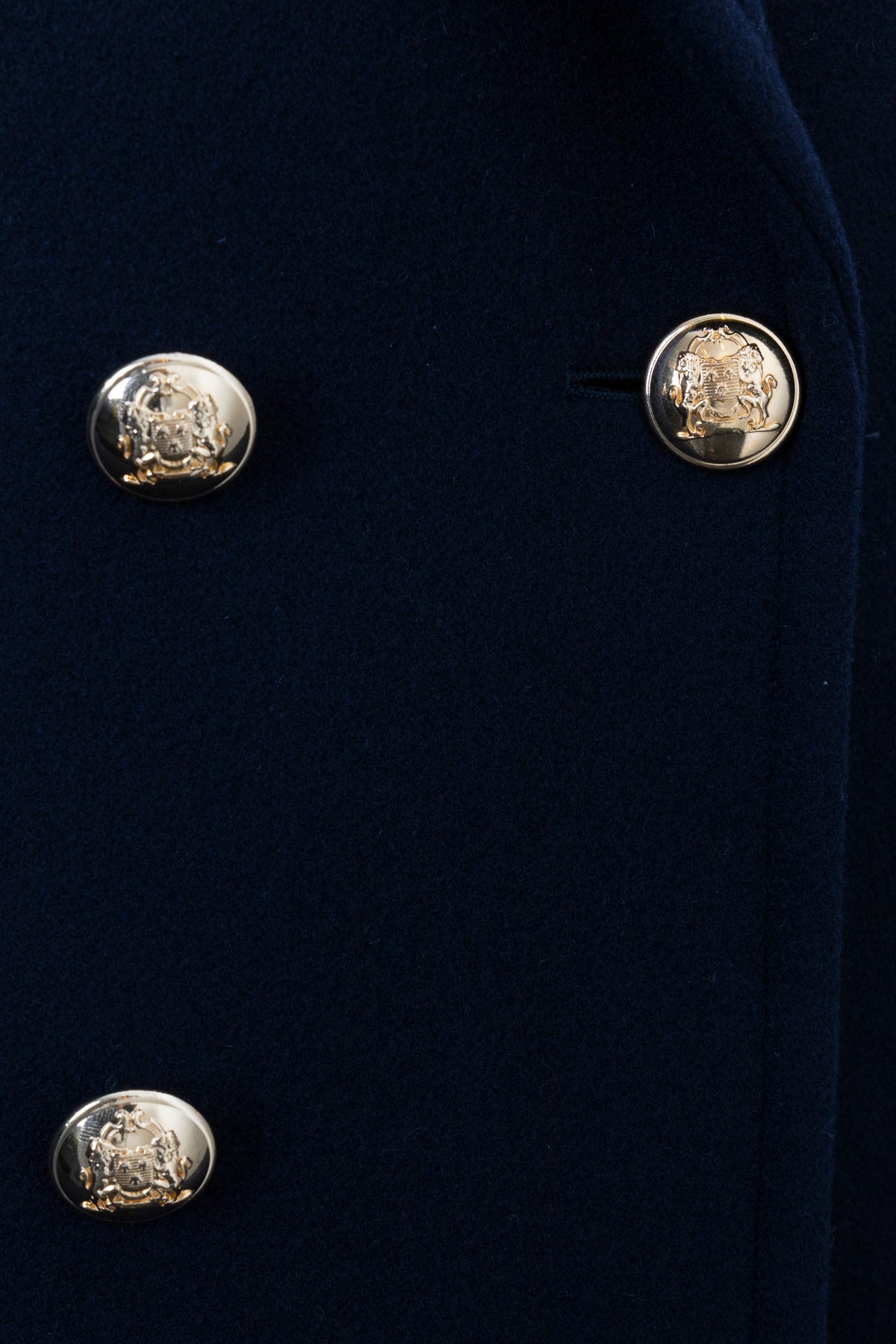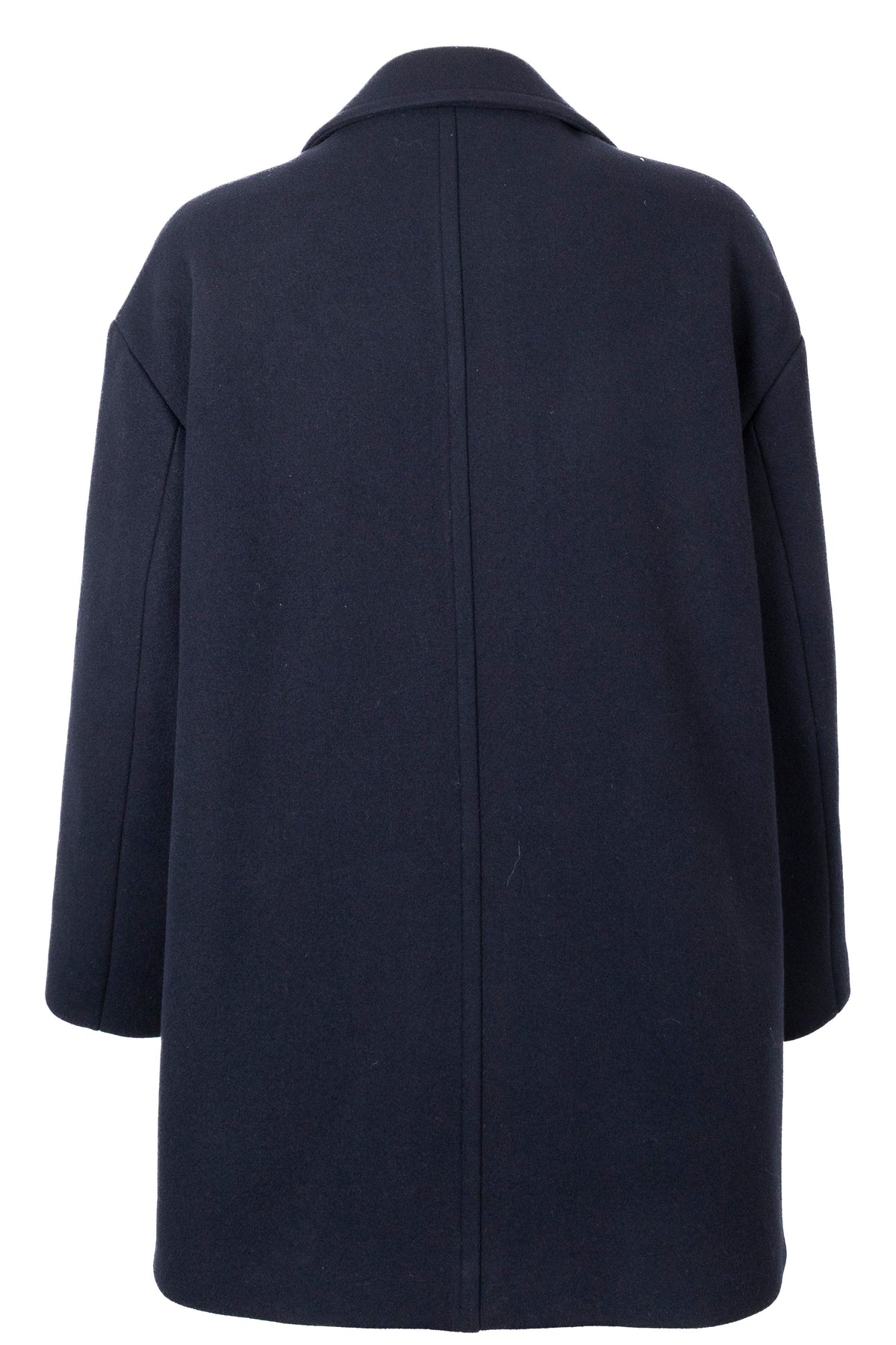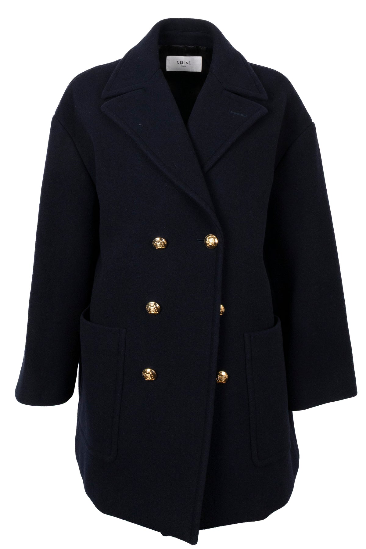 The CELINE Double Breasted Peacoat in high-quality wool in deep navy exudes classic elegance with a modern twist.