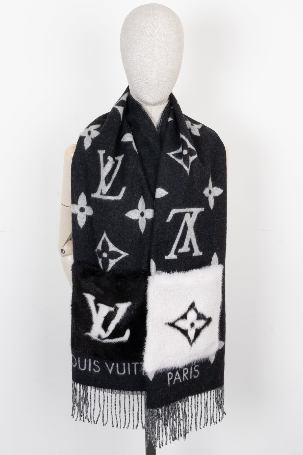 LOUIS VUITTON Cold Reykjavik Mink Pocket Scarf Cashmere Black