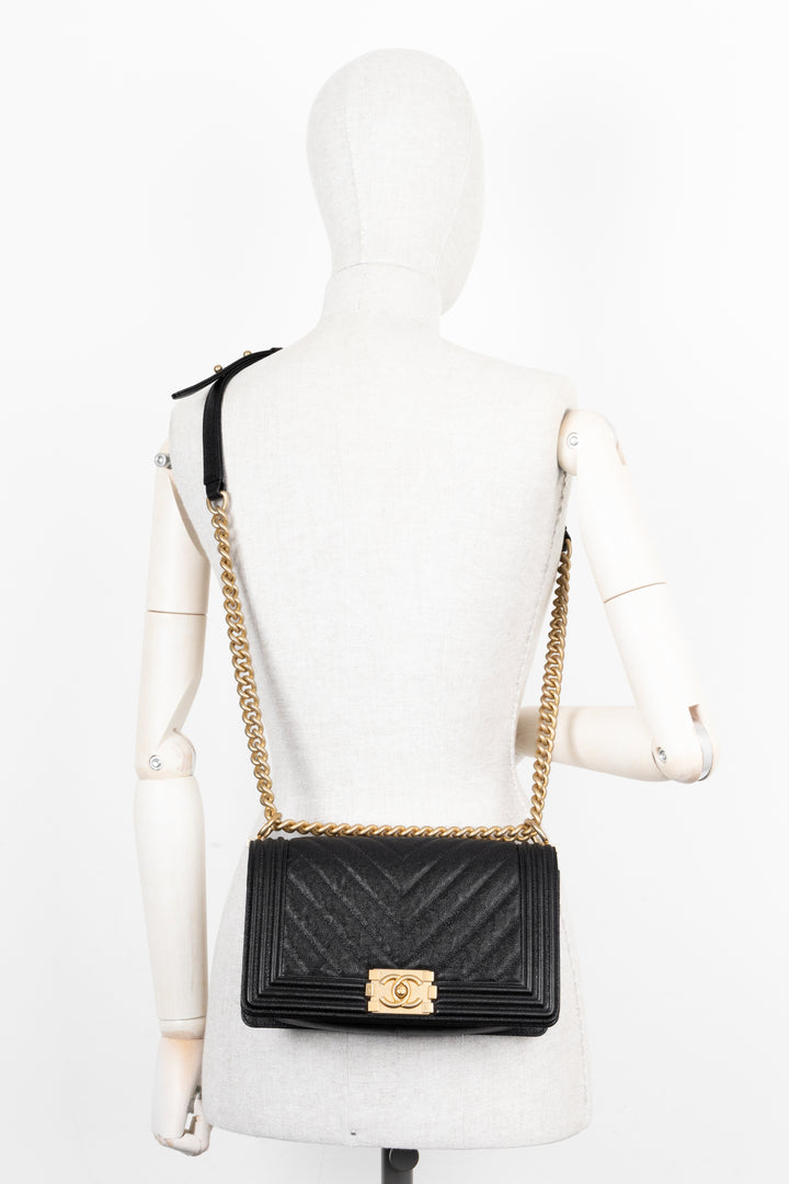 CHANEL Medium Boy Bag Grained Calfskin Black