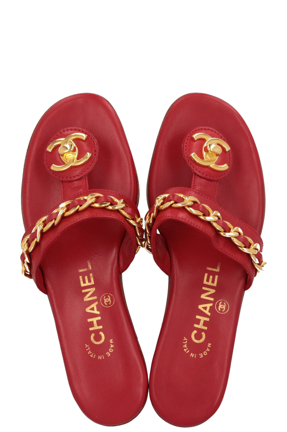 The CHANEL CC Turnlock Sandals in red with gold-tone details are a treasure that combines classic brand codes with summery lightness. The open design combines smooth leather in a rich, warm shade of red with the iconic turnlock elements, reminiscent of the closures of classic CHANEL bags, as a functional yet decorative detail.