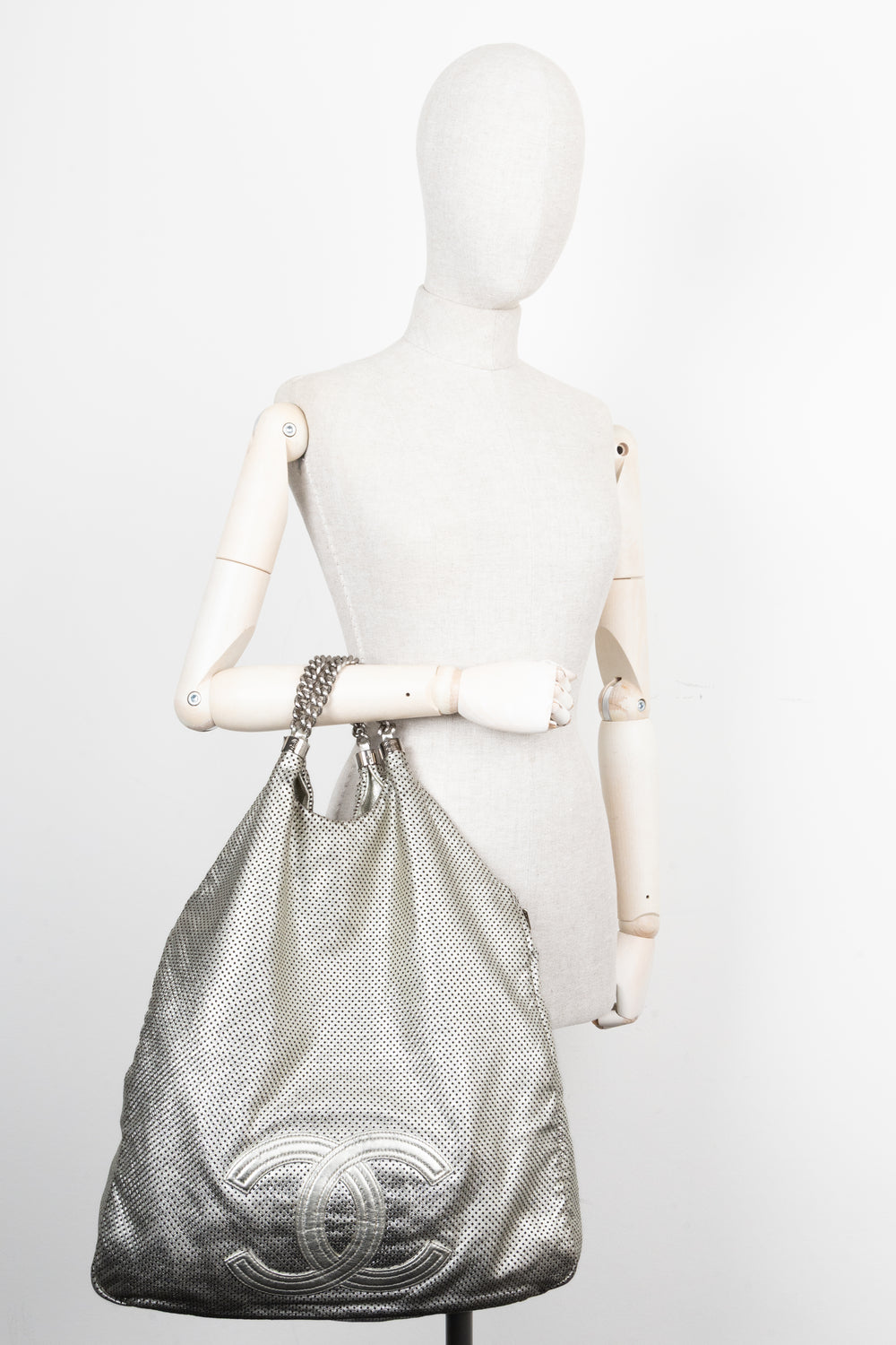 CHANEL Perforated Rodeo Drive XL Hobo Bag Silver