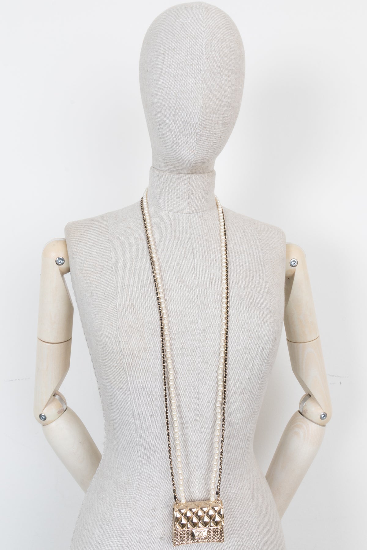 CHANEL The Chain Flap Bag Necklace Pearls Chain