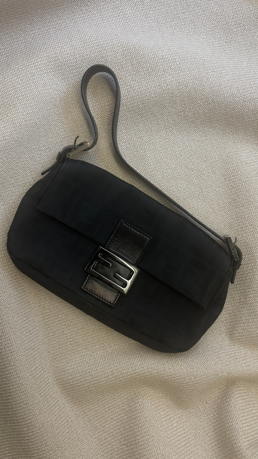 FENDI Baguette Bag in Zucca Canvas, Black