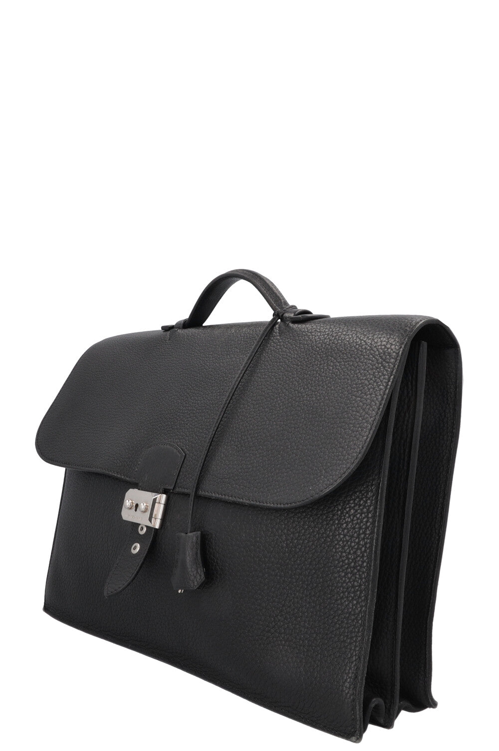 Crafted from black Clemence leather, the bag is soft, subtly grained, yet robust enough for everyday use. Its generous size of 41 offers ample space for documents, a laptop, or travel essentials, while the structured flap and short handle ensure comfortable carrying. Inside, a functional layout keeps everything organized and easy to find. A treasure that unites Hermès heritage, craftsmanship, and practicality in a sophisticated, timeless silhouette.