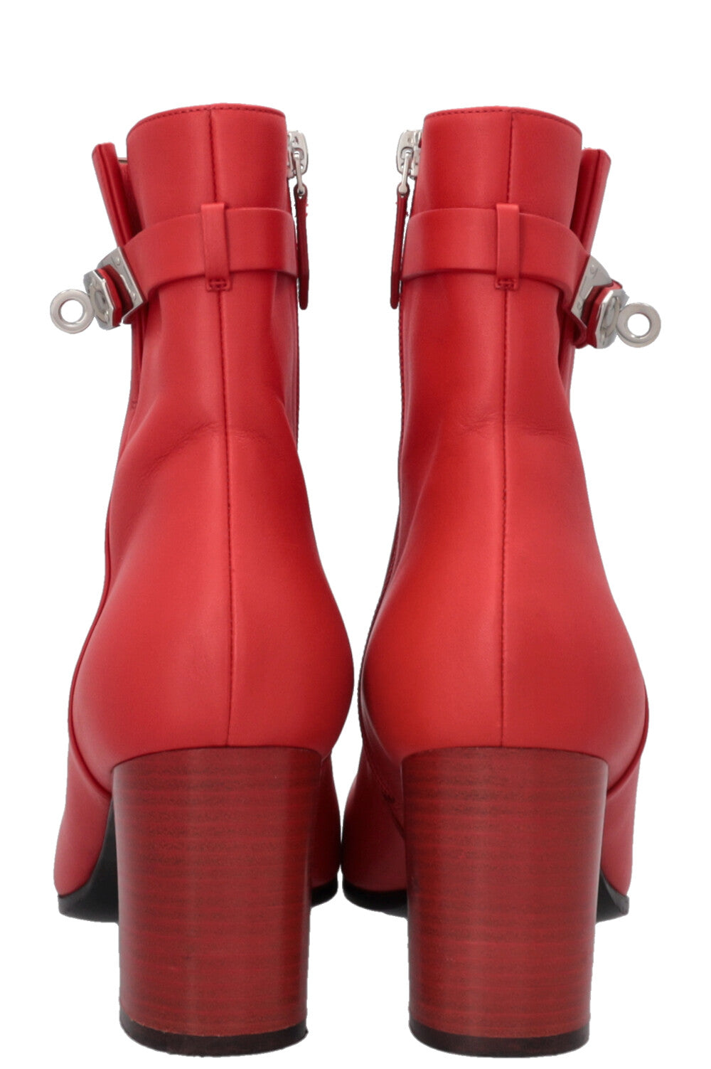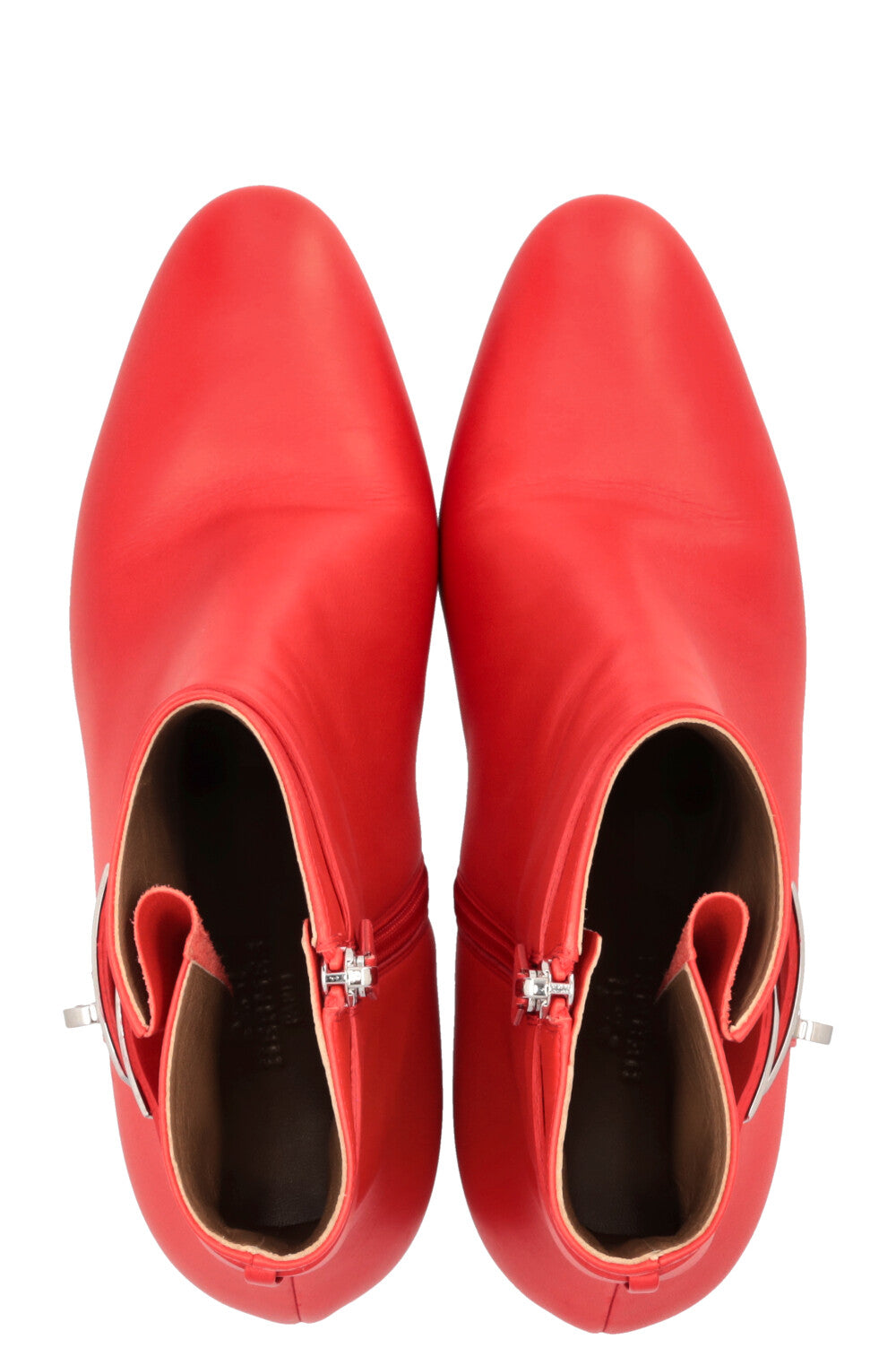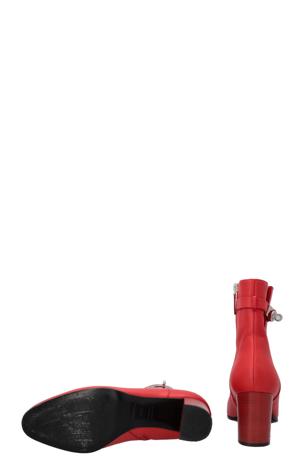 Details: Slight signs of wear and pressure marks in the leather, minimal wear on the soles, plastic protection still present on hardware.