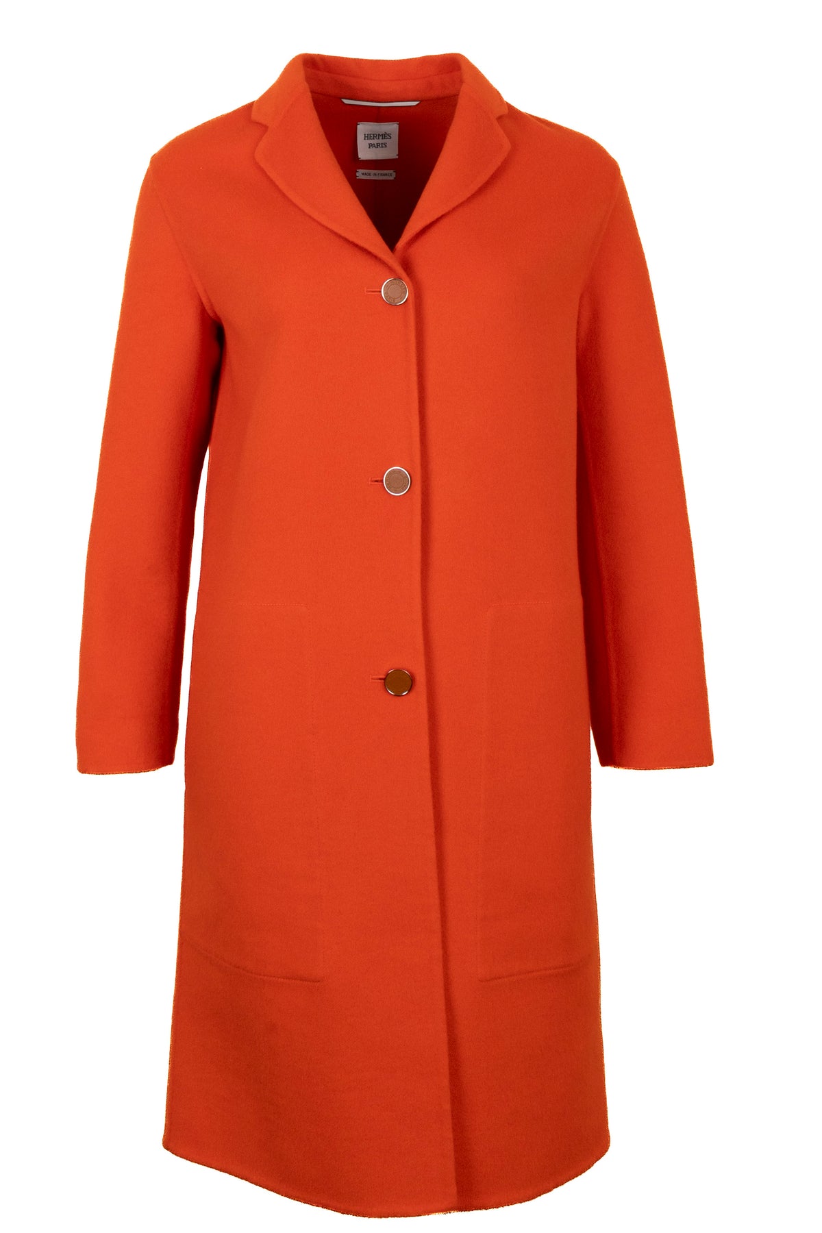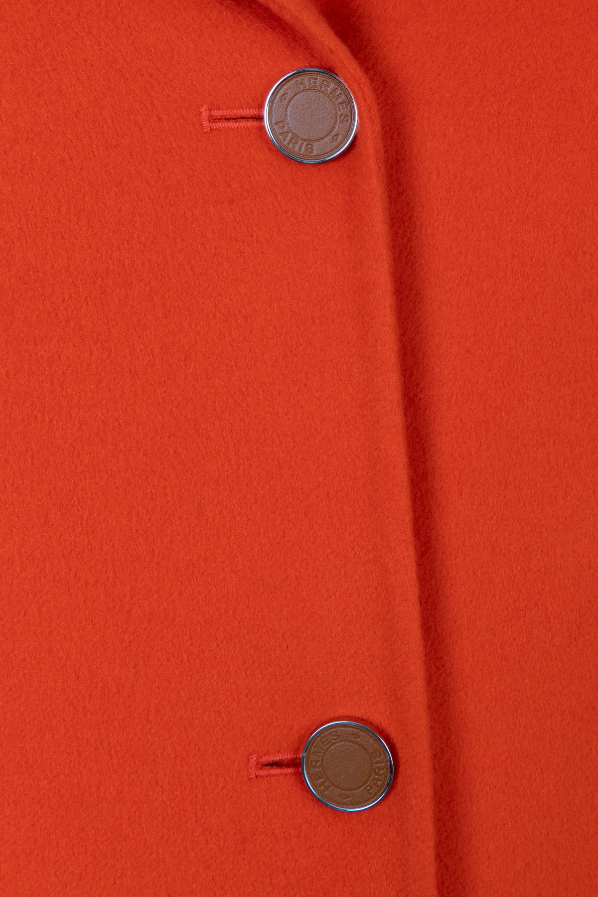 Luxurious HERMÈS coat made of the finest cashmere in intense red. Timeless elegance meets the highest craftsmanship, a statement piece for any wardrobe.
