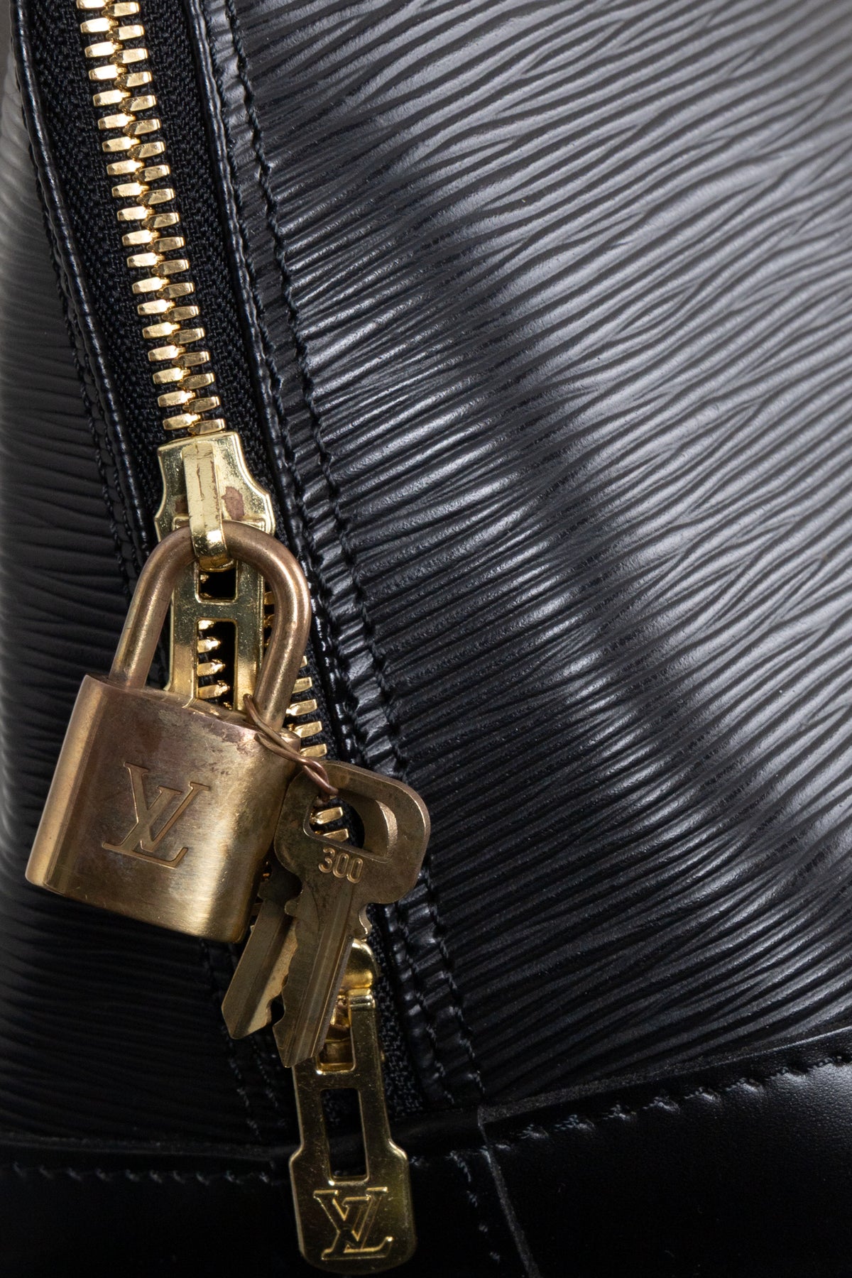 A beautiful and iconic Louis Vuitton Alma in black Epi leather, size PM. With a large interior compartment and a small side pocket, the bag offers plenty of storage space, making it perfect for everyday use. It's very elegant yet spacious and a must-have for any Louis Vuitton lover.