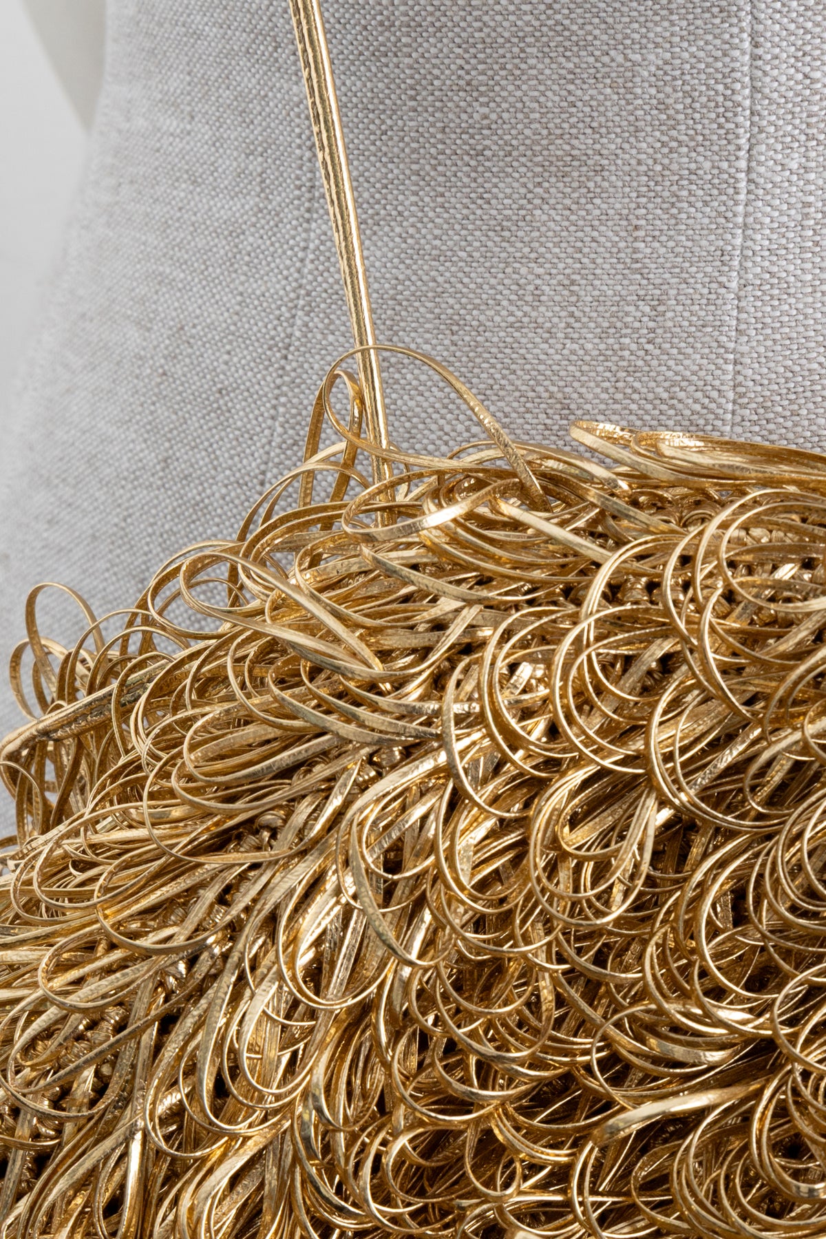 The idea alludes to the quiet craftsmanship of the house, which is known for its fine workmanship and materials, here without a braided pattern, as the form itself is the focus, the fringes give rhythm and dynamism. Oro Gold is a deep, warm gold, not glaring, and harmonizes particularly well with black, cream, dark brown and denim.