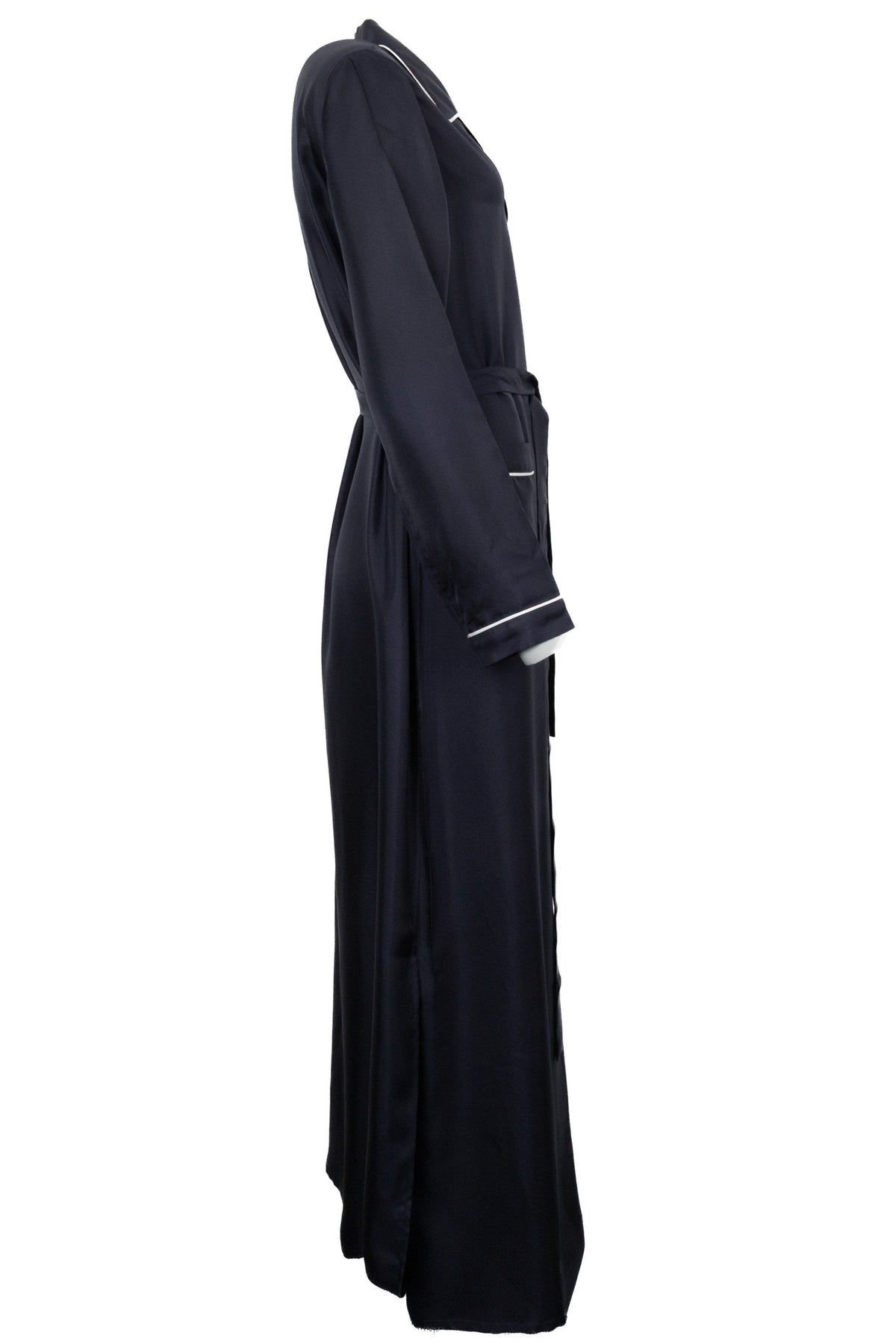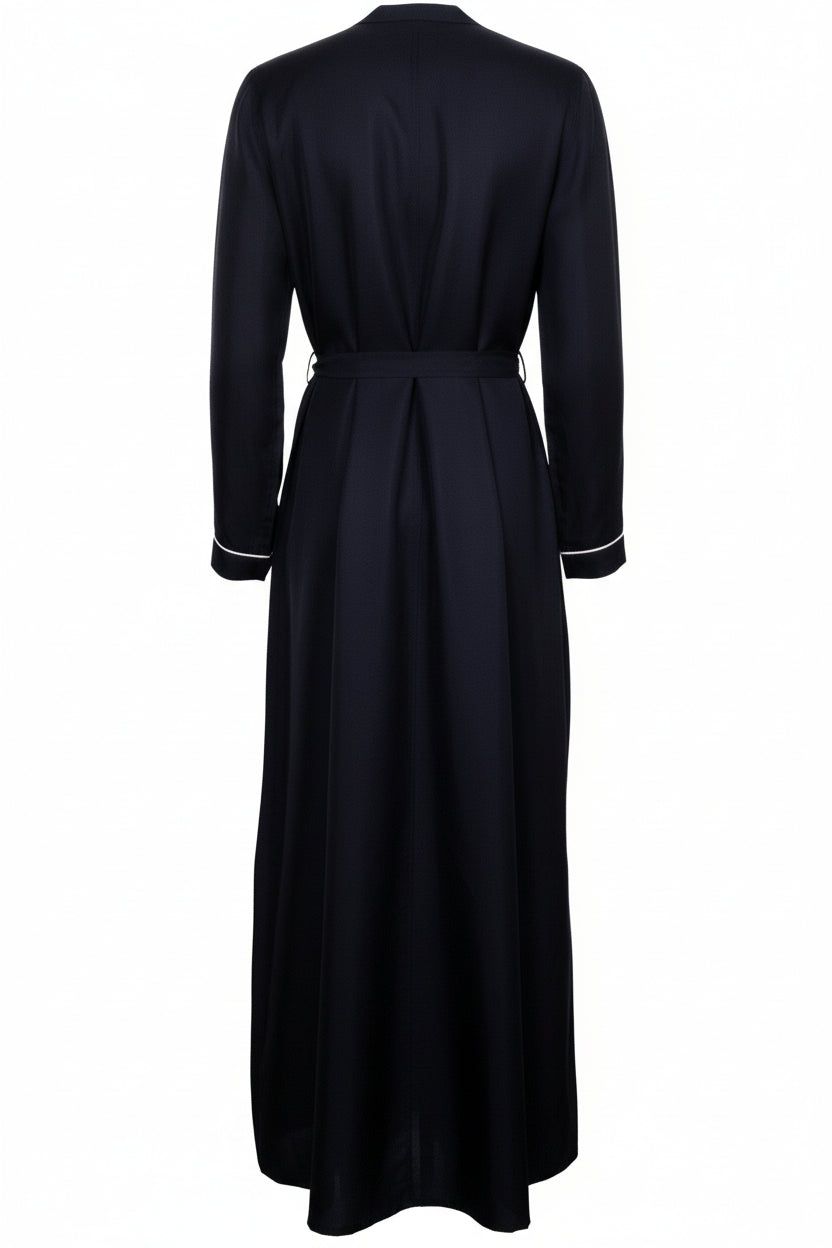 2022 Belted Contrast Seam Dress Silk Navy