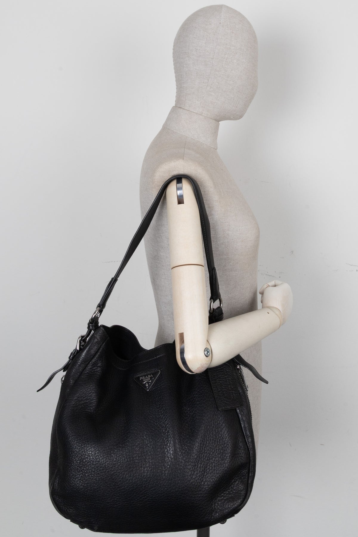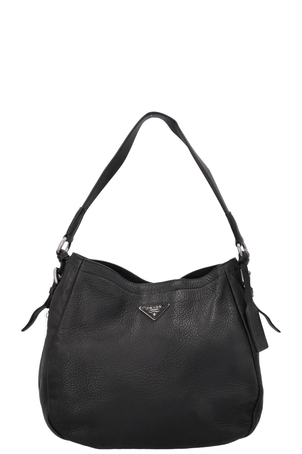 PRADA Logo Zip Hobo Bag Black
