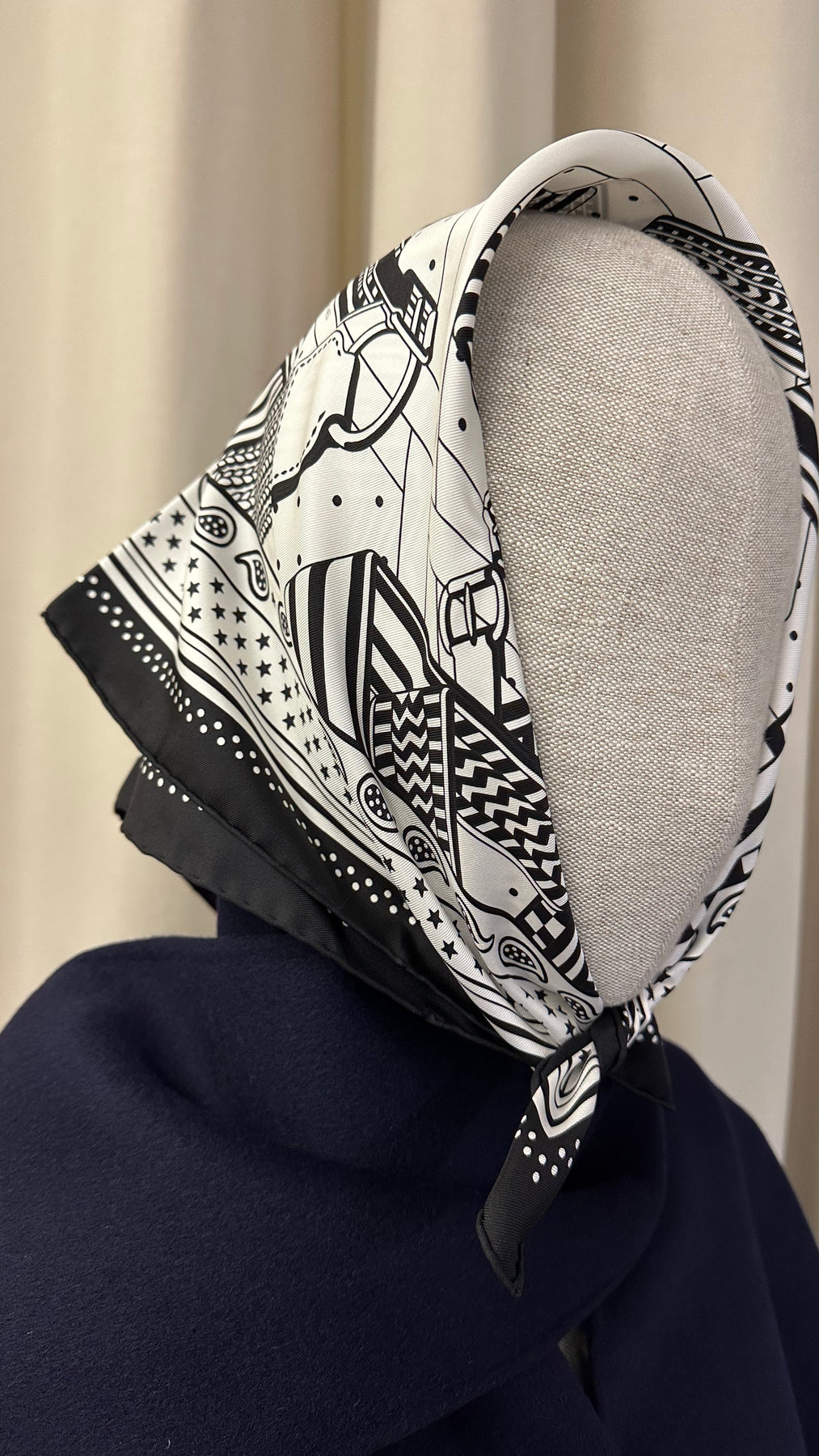 HERMÈS Sangles en Zigzag Carré 55 Black White