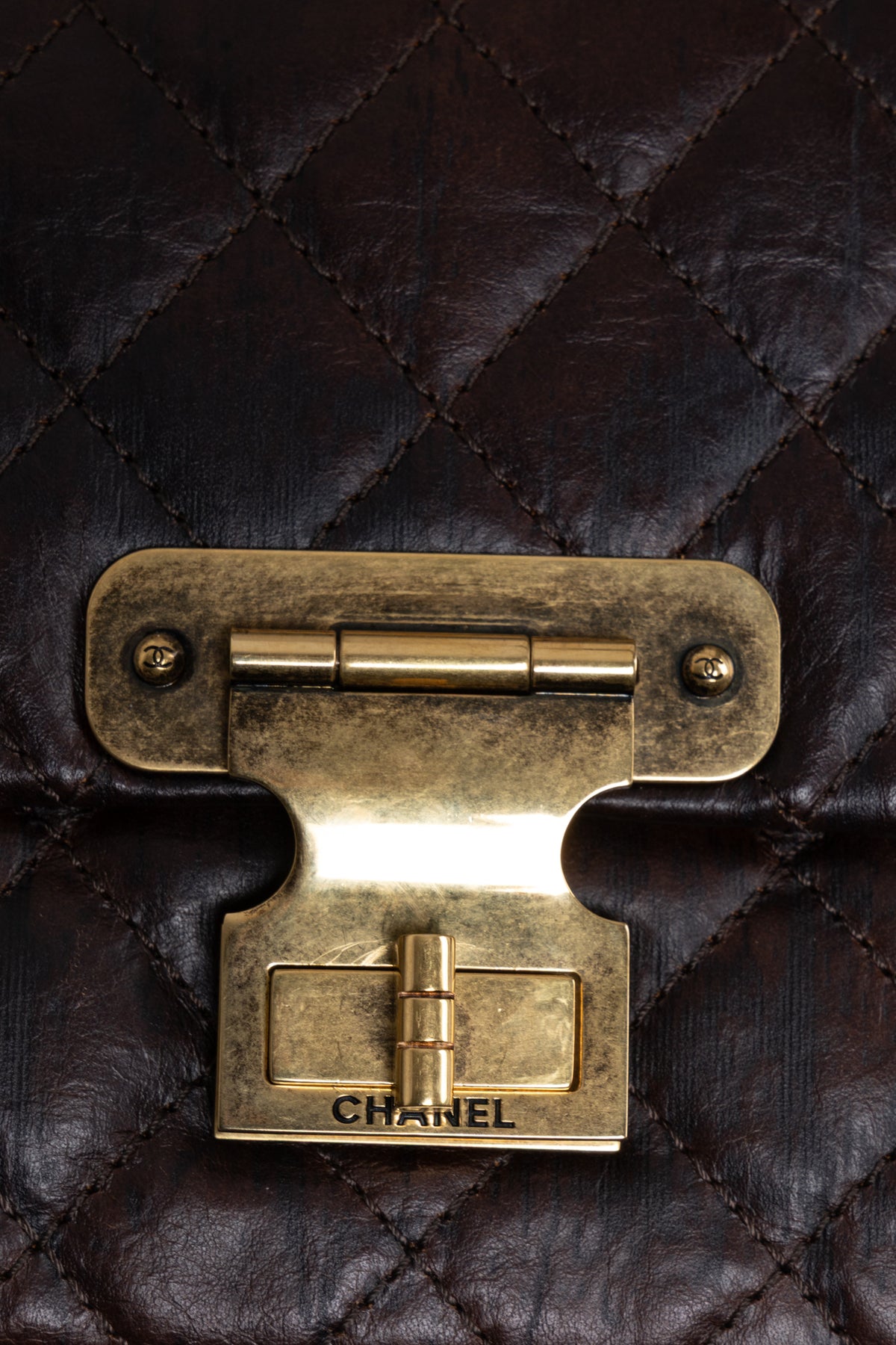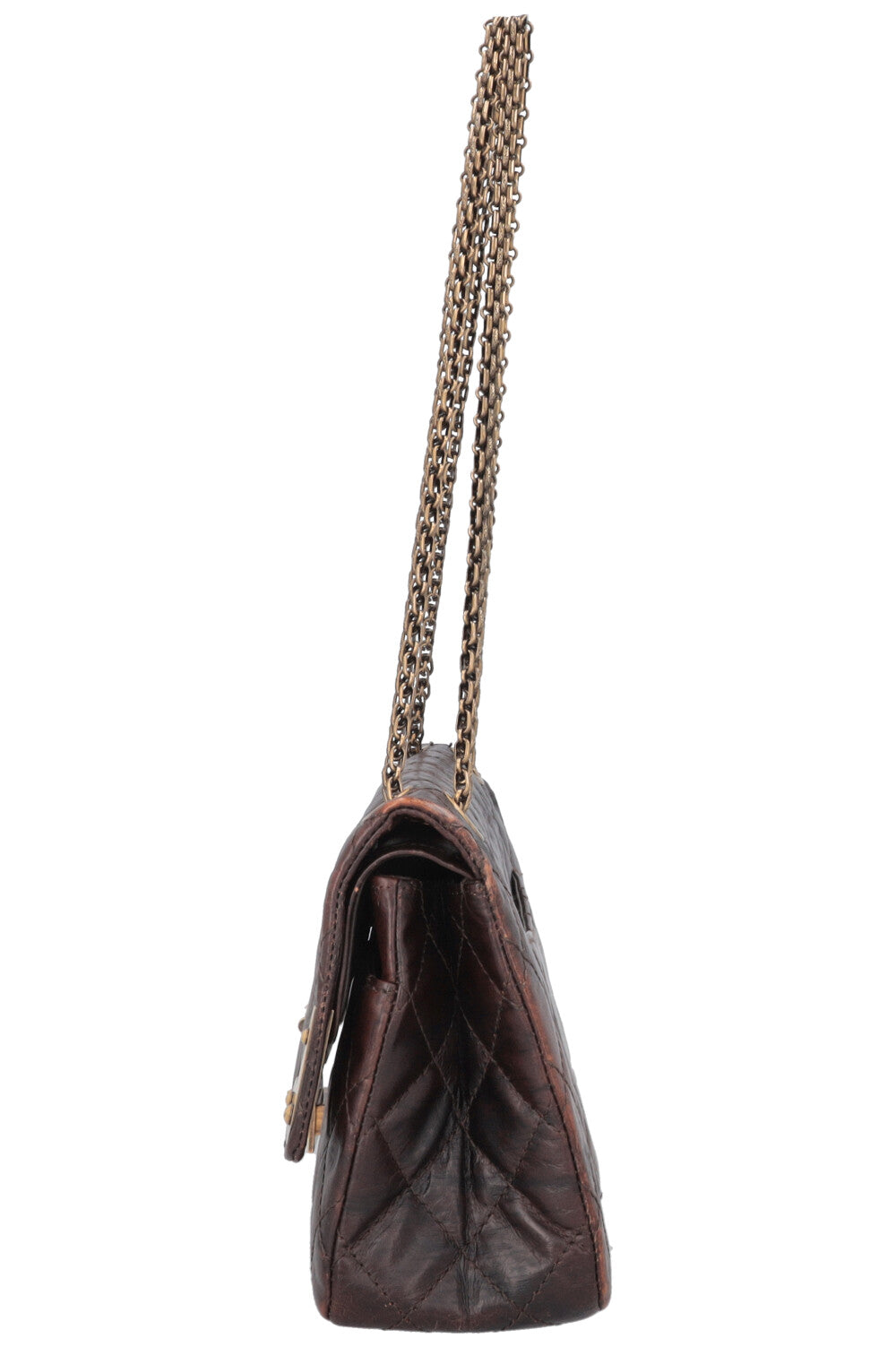 The CHANEL Paris Shanghai 2.55 Reissue Medium Double Flap Bag in brown combines classic couture craftsmanship with the Maison's iconic design. The quilted surface, double flap closure, and chain shoulder strap are distinctive features that directly reference the original 1955 model.