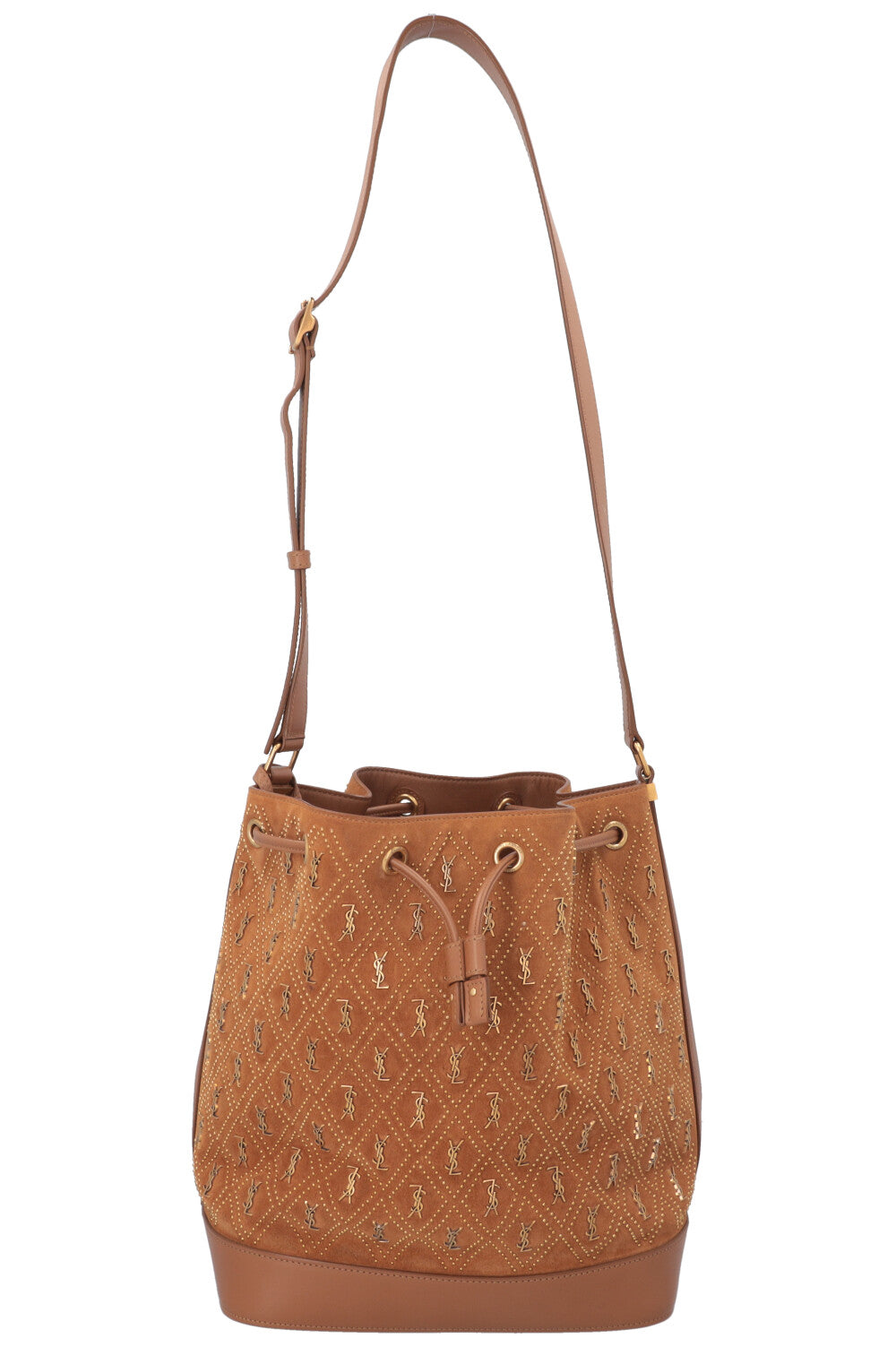 SAINT LAURENT Le Monogramme Studded Bucket Bag Suede Brown