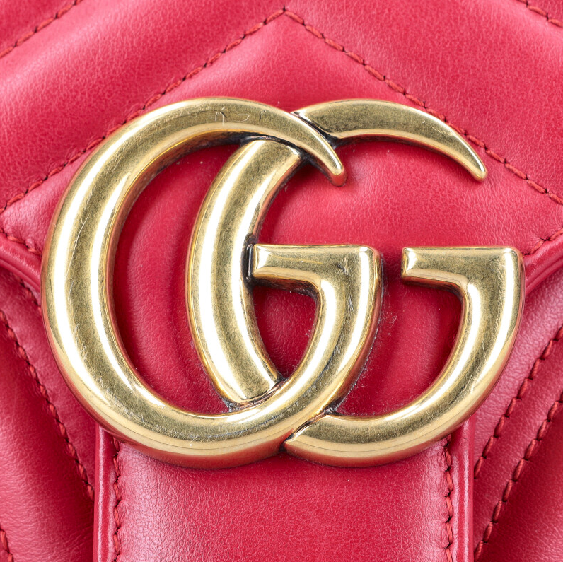 The chevron stitching, which is known for Marmont handbags and purses, can be a decisive indication of authenticity. The stitching should be even and precisely spaced. The absence of double stitching, broken threads, knots or loose stitches is a sign of a non-authentic product. The stitch length and the distances between the lines should be even.
