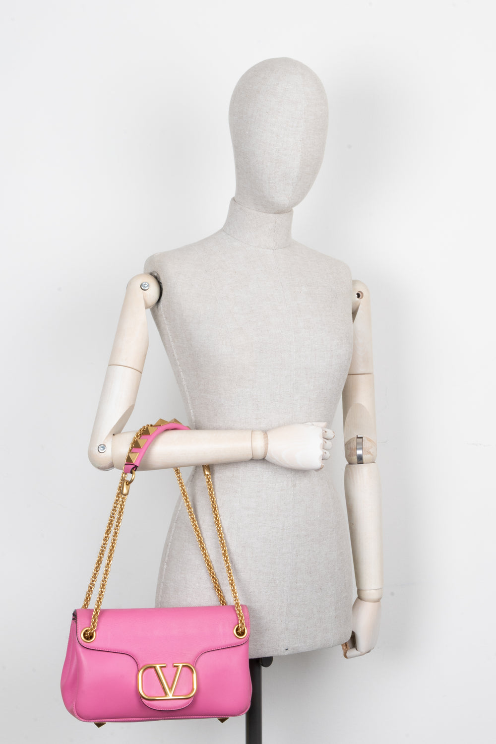 Roman Stud V Logo Bag Leather Pink