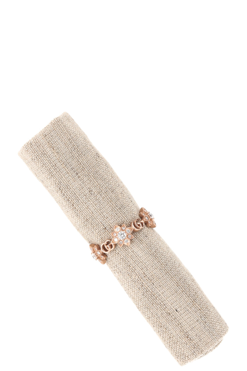 Détails floraux en or rose, ornés de diamants, logo Double G : cette bague incarne tout ce que nous aimons chez Gucci.