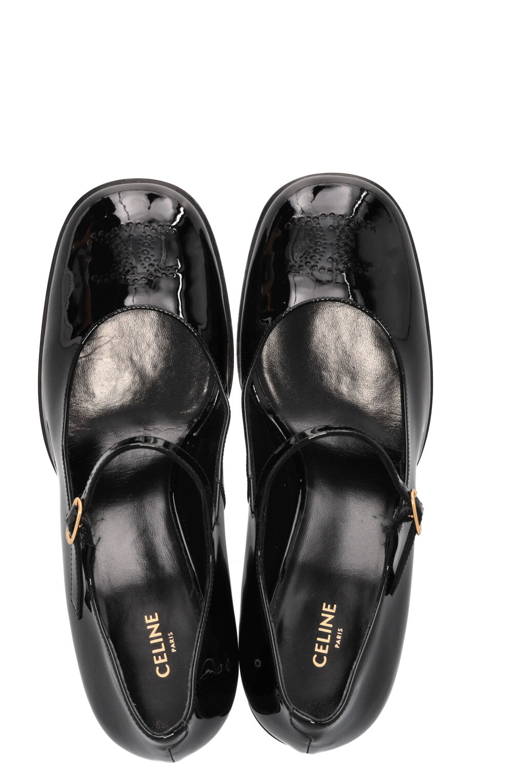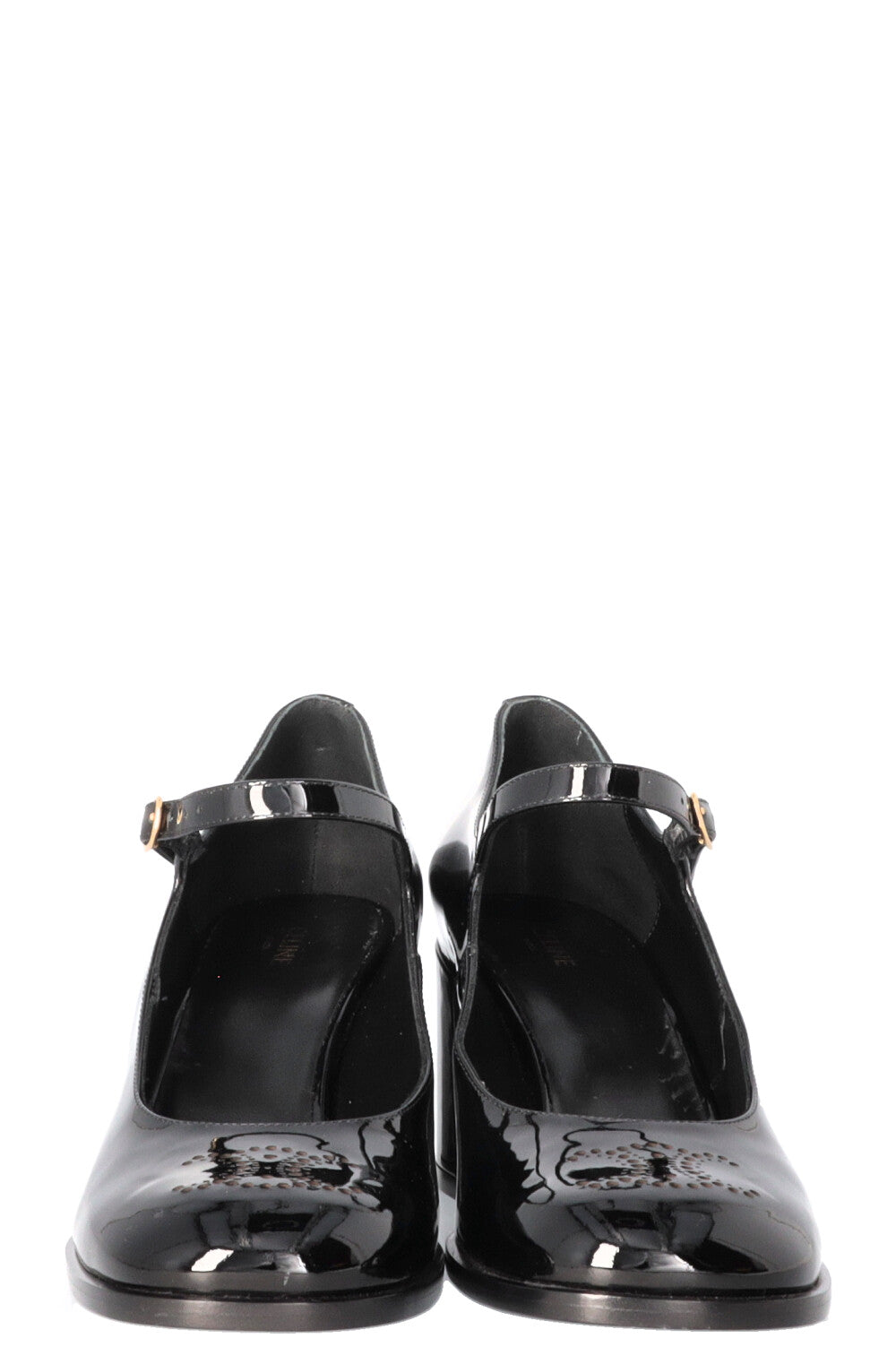 CELINE Lilly Babies Triomphe Mary Jane Heels Patent Black
