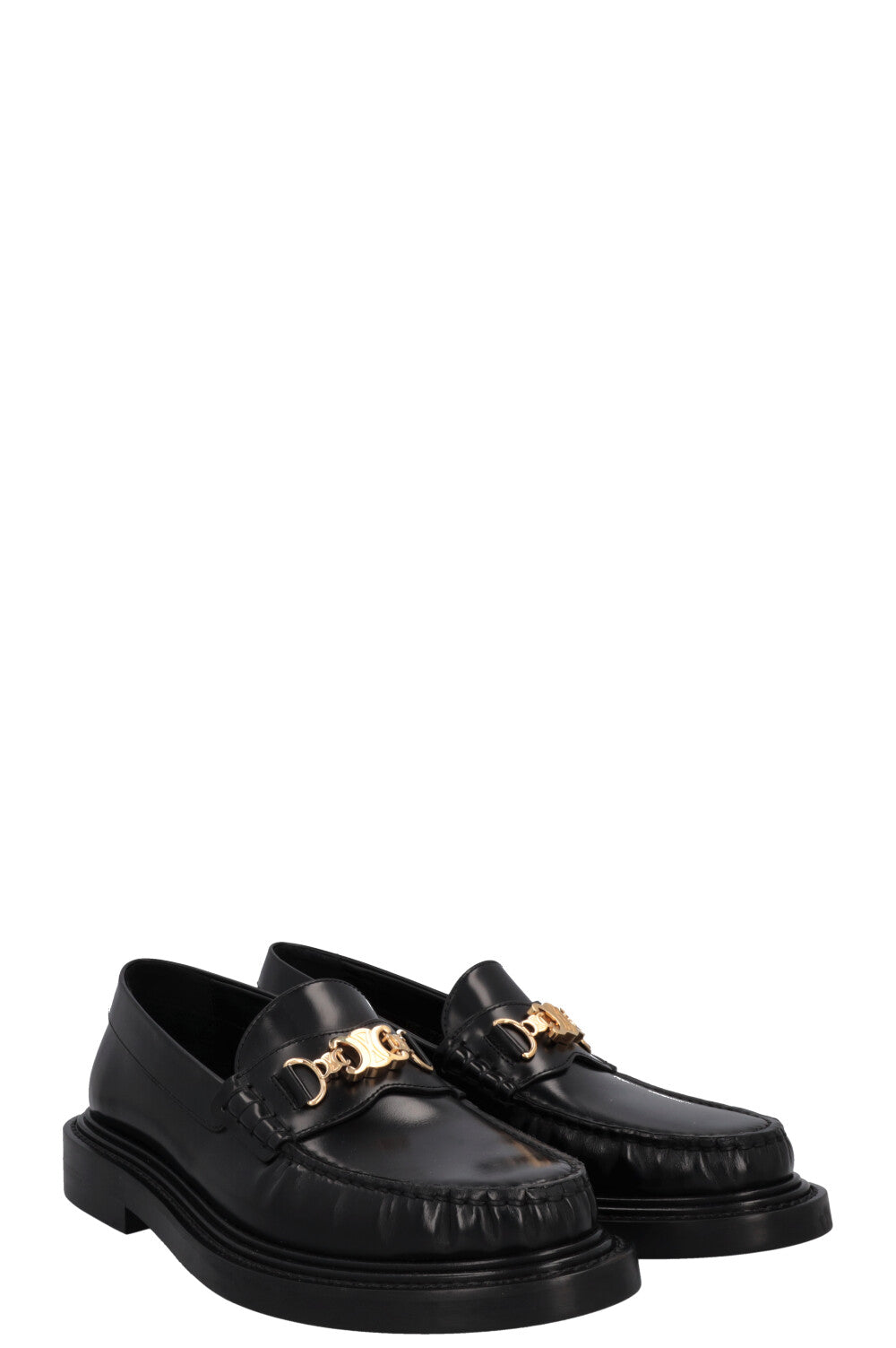 Confectionnés en cuir de taureau noir, ces mocassins présentent un poli raffiné qui leur confère profondeur et élégance. Leur forme classique et élégante, avec son bout arrondi et son talon discret, est complétée par un talon plat qui convient aussi bien au quotidien qu'au bureau. Un appliqué Triomphe en métal sur l'empeigne, signature de la marque, souligne le design sans exagération. À l'intérieur, une semelle intérieure en cuir et une doublure lisse assurent le confort, tandis que l'empeigne cousue main témoigne du souci du détail et d'une confection de qualité. Ce modèle allie signature emblématique et présence sereine, pour une polyvalence infinie.